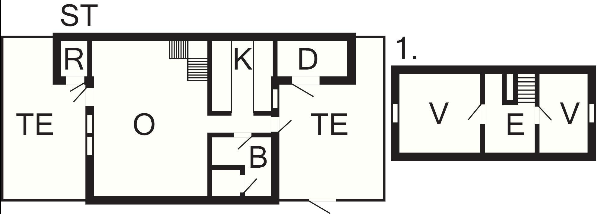 2 Soveværelser: (1DS)+(1DS+2S)