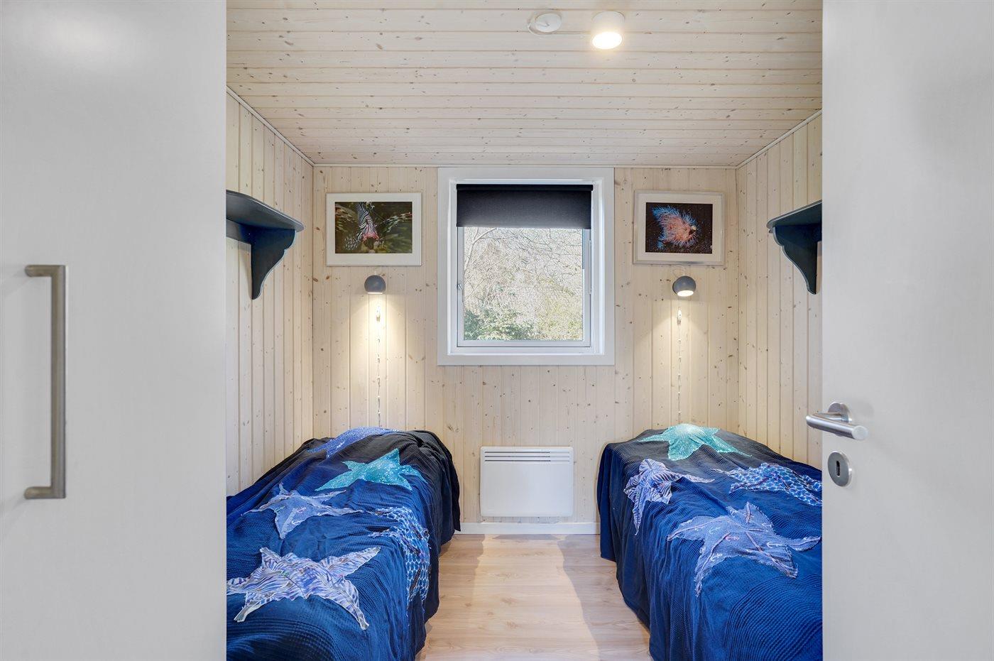 Der er i alt 2 soveværelser. Sovepladserne fordeler sig på: 2 sovepladser i dobbeltseng. 2 sovepladser i enkeltsenge.