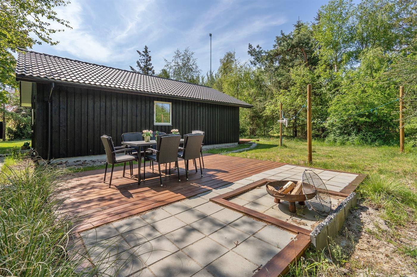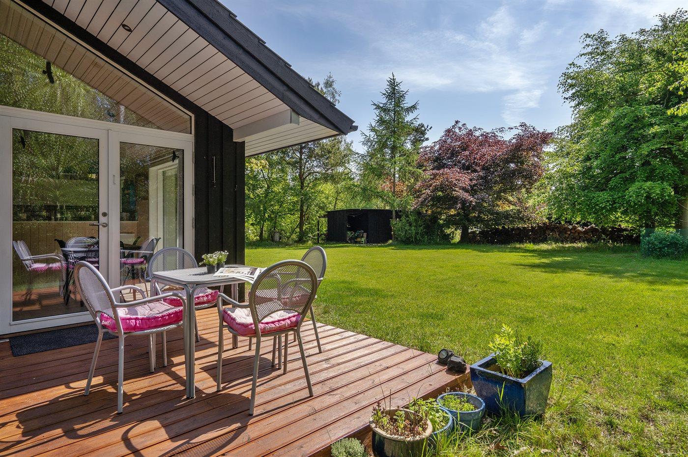 Kun 200 fra stranden - i et stille og fredeligt ferieområde med en masser af muligheder for at nyde naturen finder I dette skønne sommerhus, bygget i 2020. Grunden er en dejlig blanding af græsplæne og naturgrund langs skellet.