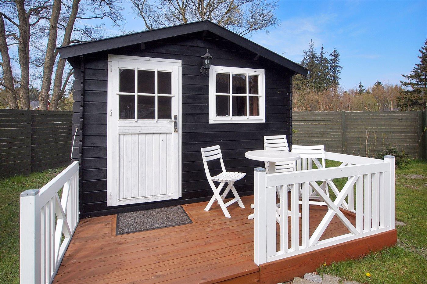 Lille og romantisk indrettet sommerhus med en lys og smagfuld indretning. Huset ligger på en hjørnegrund, indhegnet med et hegn (mindst 70 cm i højden), hvilket gør det velegnet til at have op til små hunde med. Til huset hører såvel åben som overdækket terrasse med havemøbler. Huset er blevet moderniseret løbende. Udover ét soveværelse findes der 2 sovepladser i husets anneks eller mulighed for opredning på en dobbelt sovesofa i opholdsstuen.