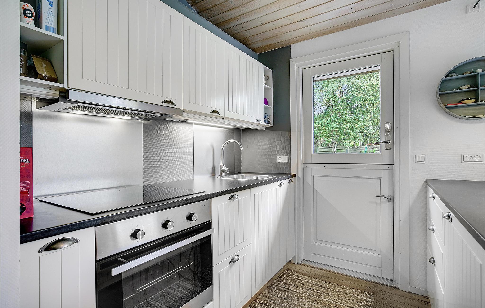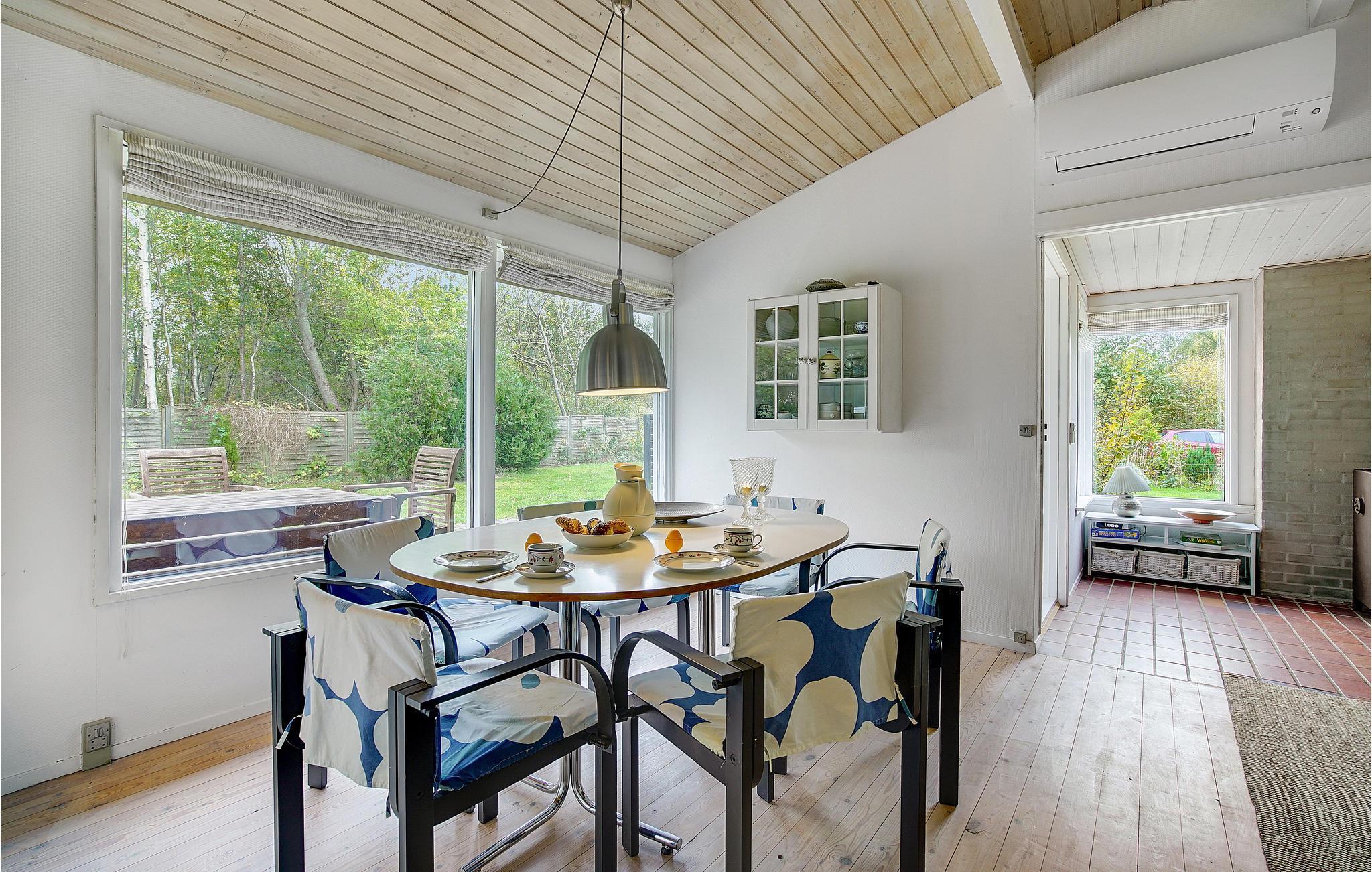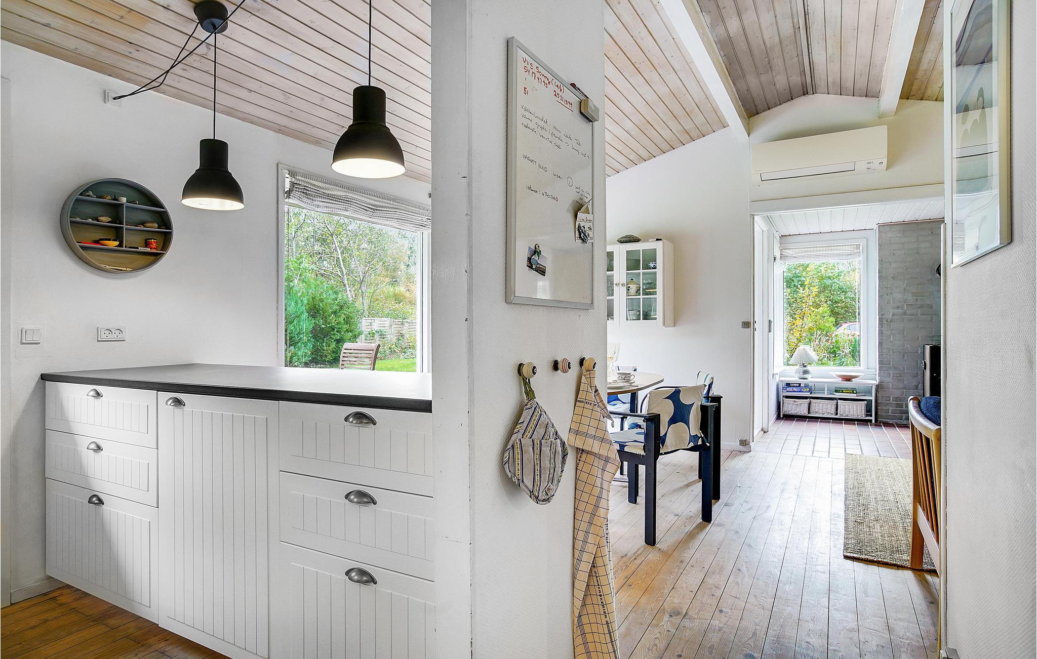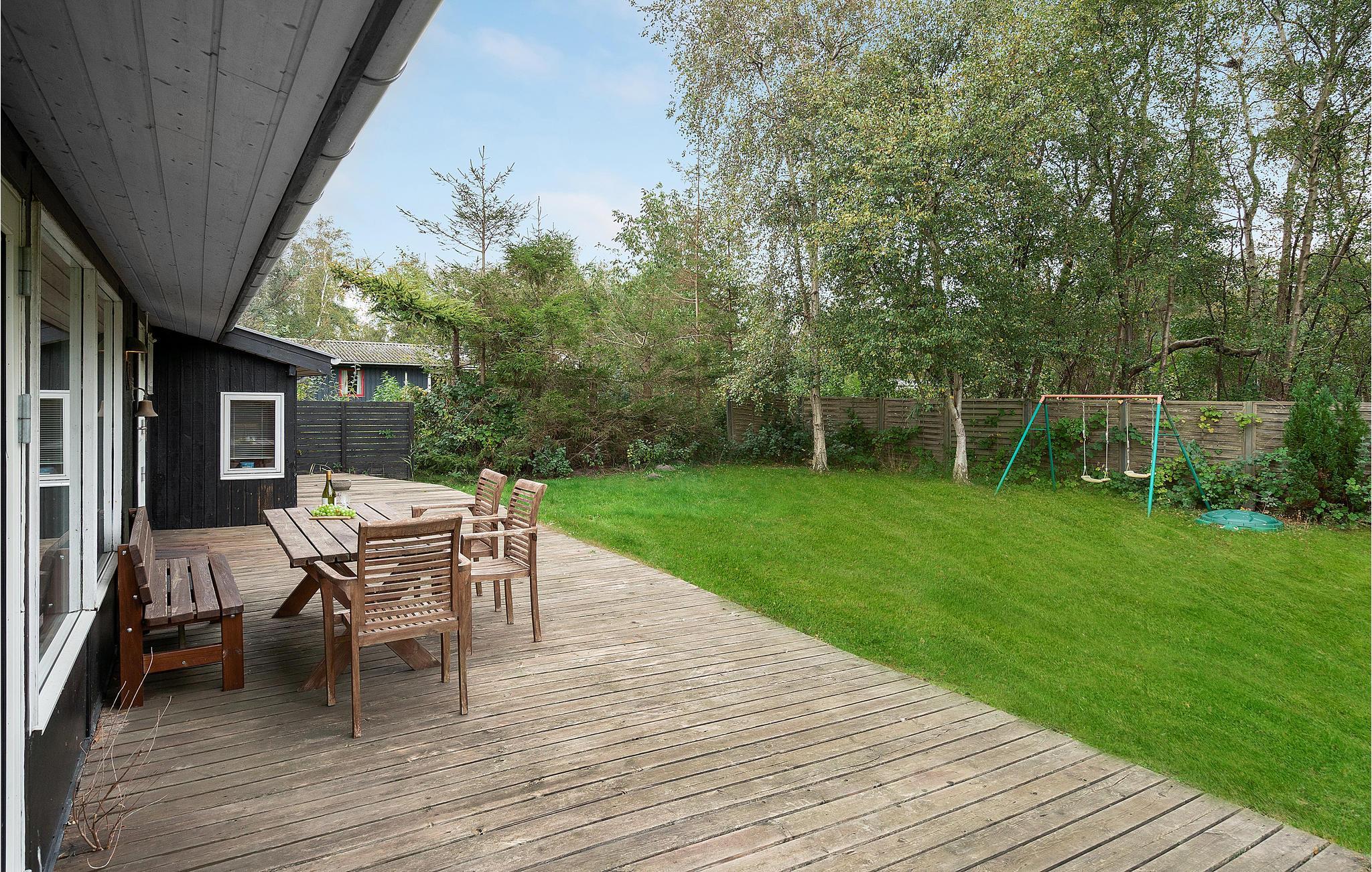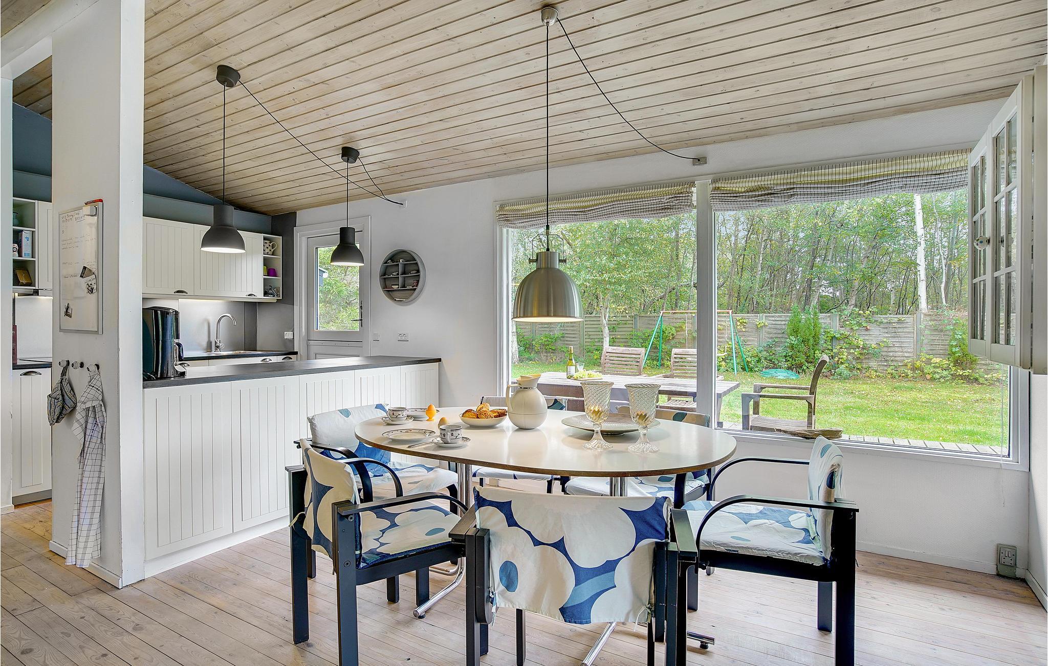 Velkommen til dette komfortable feriehus, omkranset af en dejlig græsplæne og smukke grønne trækroner. Her kan I tilbringe jeres længe ventede familieferie. Det indbydende feriehus med en lys atmosfære, friske farvedetaljer og ikke mindst et spabad og en sauna er et godt sted at koble af. Tilbered lækre måltider sammen i det veludstyrede køkken, som ligger i åben forbindelse med stuen. Hvorfor ikke spille brætspil ved spisebordet? Huset byder på en stor åben terrasse. Smid lidt lækkert på grillen og læg planer for den kommende ferie. Gå til stranden og tilbring hyggelige timer med sjov vandleg og imponerende sandslotte.
