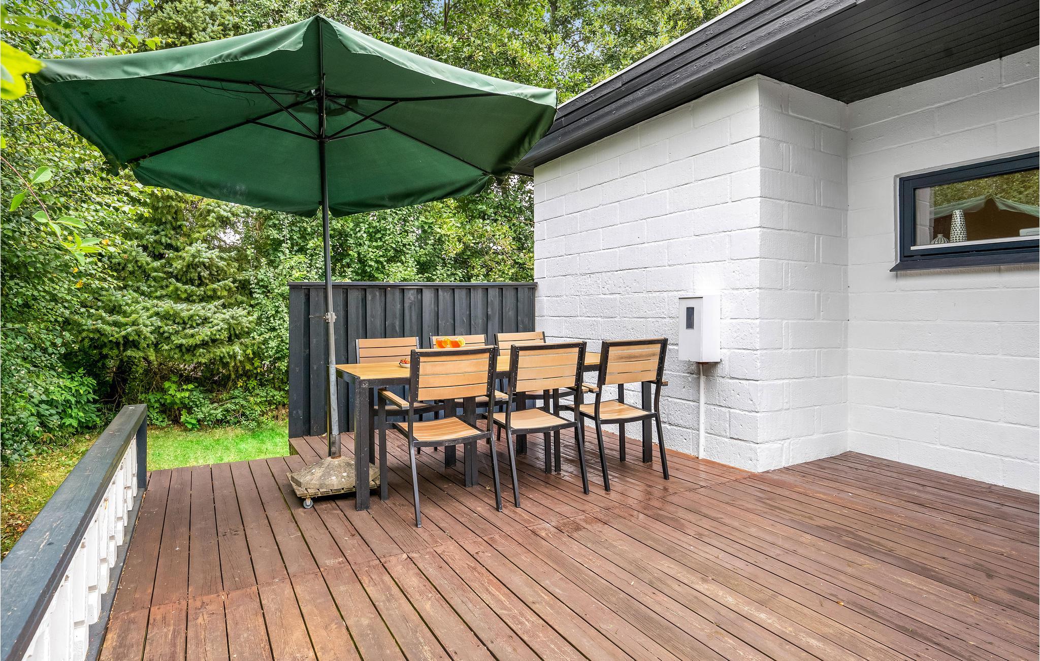 Smagfuldt indrettet stue og åbent køkken. Feriehuset har en stor udestue med terassevarmer. Derudover har det flere terrasser, hvor I altid kan finde en plads med solskin eller skygge og nyde alle jeres måltider. Der er også et lækkert vildmarksbad og en solbruser udenfor. Her er virkelig tale om ro, hygge og afslapning. Huset har Wi-Fi.