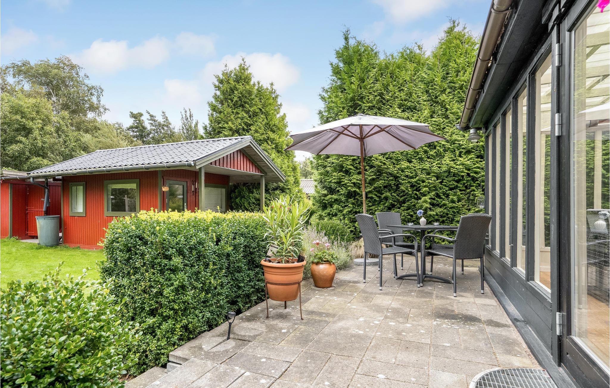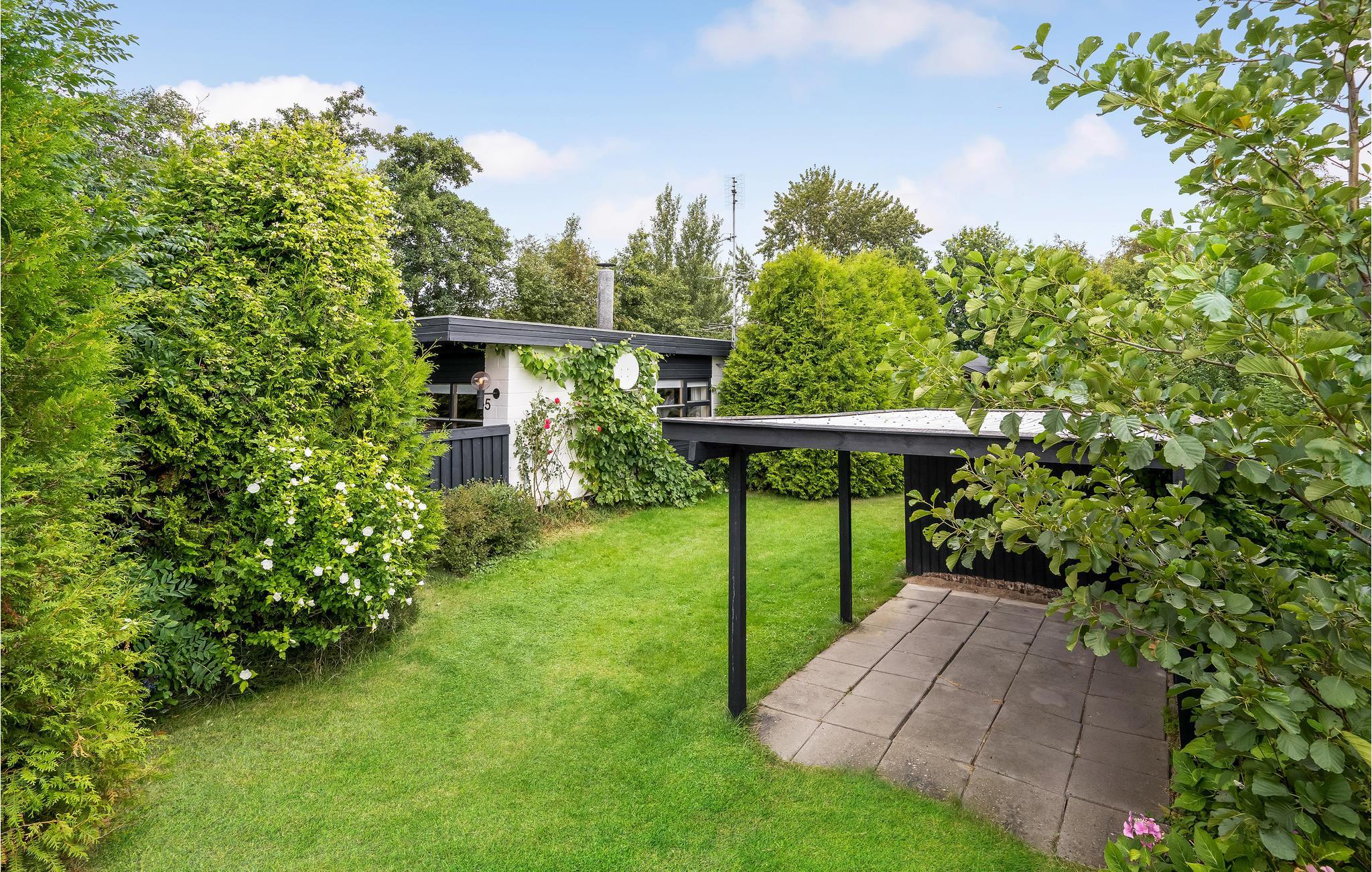 Hyggeligt feriehus i Gedesby med vildmarksbad, flere terrasser og kort afstand til badestrand og fiskemuligheder.