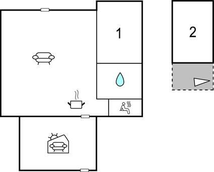 Opholdsstue/køkken - 2 Sovepladser. (Sofa, madras eller lignende).