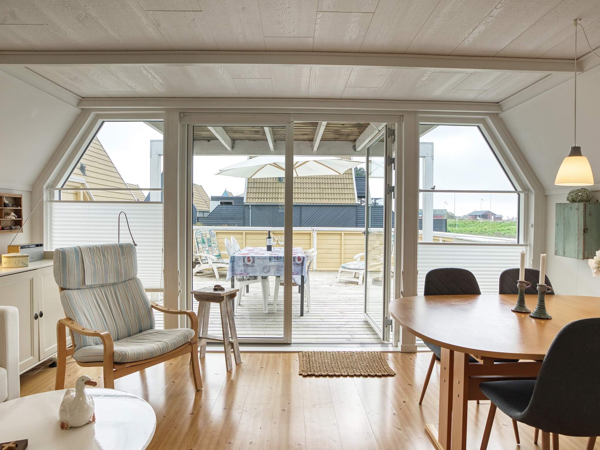 Huset har et renoveret køkken, et badeværelse med bruser og en åben opholdsstue med store glasdøre, der fører ud til en rummelig træterrasse. Der er to komfortable soveværelser, en balkon og to ekstra terrasser, hvor gæsterne kan nyde panoramaudsigten over havet og aftensolnedgange. Den lyse stue, med sine generøse vinduespartier, sikrer masser af naturligt lys og en indbydende atmosfære til familiesammenkomster eller stille stunder.
