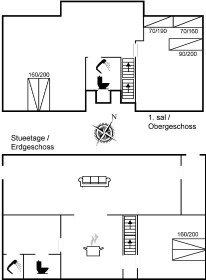 Ferieboligen råder over ca. 160 m² fordelt på to etager og en dejlig stor have med græsplæne, buske og frugttræer (grundstørrelse ca. 1000 m²).