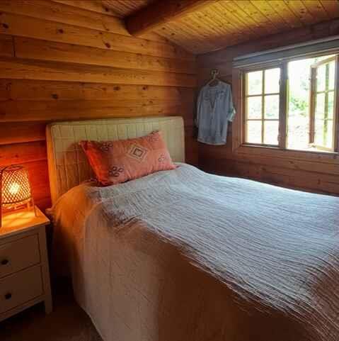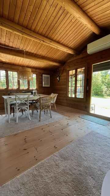 Autentisk norsk bjælkehytte med græs på taget - Her er lagt op til ro, hygge og nærvær. Drømmer I om en ferie væk fra hverdagen og komme helt ned i gear? Et sted der indbyder til ro, nærvær, samtaler, brætspil og spil i haven - Så er dette stedet. Åben stue og spisestue med ny hyggelig brændeovn og udsigt over den lukkede have. Nyere køkken fra 2022, med opvaskemaskine, samt komfur med ovn. Køleskab og fryser. 3 soveværelser: Værelse 1: Dobbeltseng 140x200cm. Værelse 2: Dobbeltseng 140x200cm. Værelse 3: 2 stk enkelt senge 90x200cm. Helt nyt brusebadeværelse med gulvvarme. Nyd solen i haven med havemøbler, grill, hængekøjer og havespil eller overnat i det nye shelter. En unik lille perle, med daglig besøg af egern, spætter, fugleliv og råvildt. Beliggende på 1200m2 hyggelig sommerhusgrund afskærmet med træer og grønt, 8 minutters gå tur / ca. 800m til stranden, der blevet kåret som årets bedste badestrand, samt det natur skønne område Bøtø skoven med vilde heste, råvildt og fuglereservat. Vil i gå eller cykle langs vandet på diget, er der ca. 8 km til Marielyst og masser af ferie byliv og små 6km til Danmarks sydligste punkt Gedser Odde. Hvis en tur over grænsen og handle frister, så er der 4,3km til færgen Gedser-Rostock. Supermarked 4,7km. Nyd solen i haven med havemøbler, grill, hængekøjer og havespil eller tag på oplevelse på resten af Falster eller nu I alligevel er her, så oplev også Lolland. En unik lille perle, med daglig besøg af egern, spætter, fugleliv og råvildt. Udlejes ikke til ungdomsgrupper. Ingen husdyr tilladt, da grunden er åben uden hegn ifht. råvildt. Obs, udlejes ikke til erhversmæssigt brug.