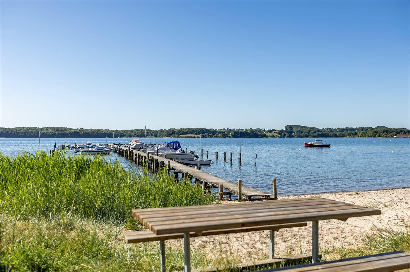 Hyggeligt sommerhus med havudsigt, indhegnet have og bådplads tæt på Genner Strand.