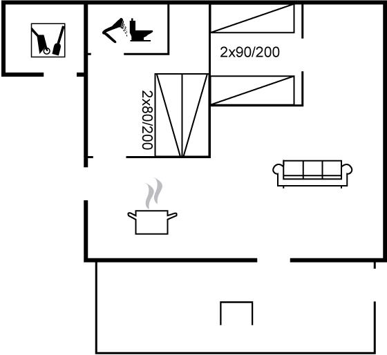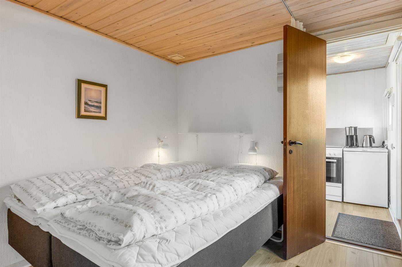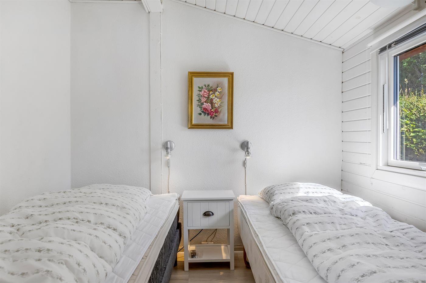 Der er i alt 2 soveværelser. Sovepladserne fordeler sig på: 2 sovepladser i dobbeltseng. 2 sovepladser i enkeltsenge.