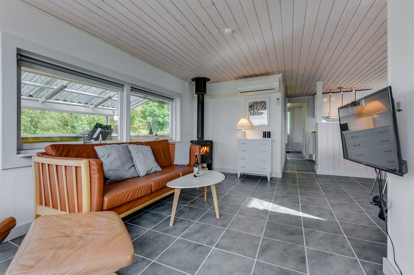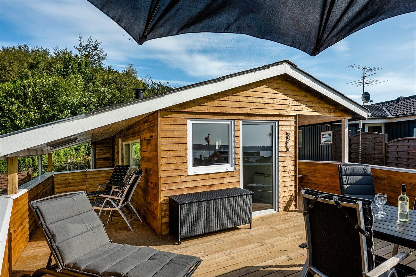 Flot nyrenoveret sommerhus med havudsigt og børnevenlig strand ved Genner Strand.