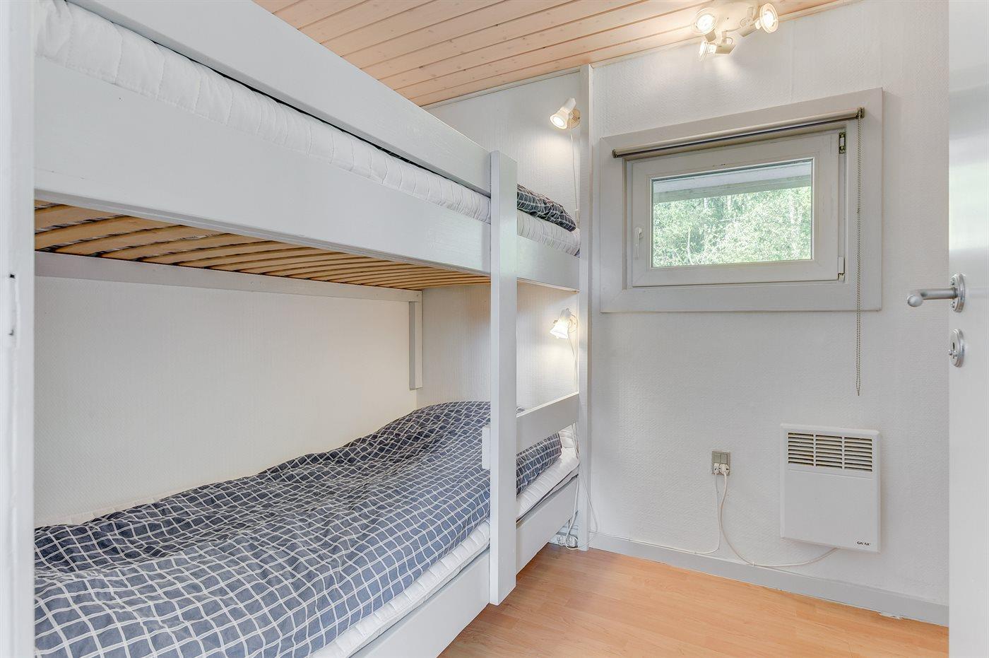 Der er i alt 2 soveværelser. Sovepladserne fordeler sig på: 2 sovepladser i dobbeltseng. 2 sovepladser i køjeseng.
