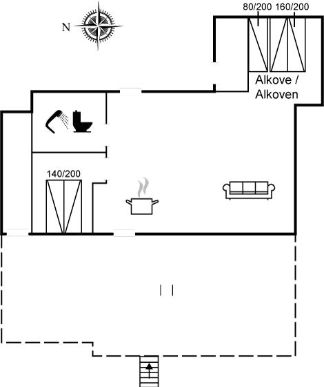 Der er i alt 1 soveværelse. Sovepladserne fordeler sig på: 2 sovepladser i dobbeltseng. 2 sovepladser i alkove. Derudover er der 1 stk. barneseng.
