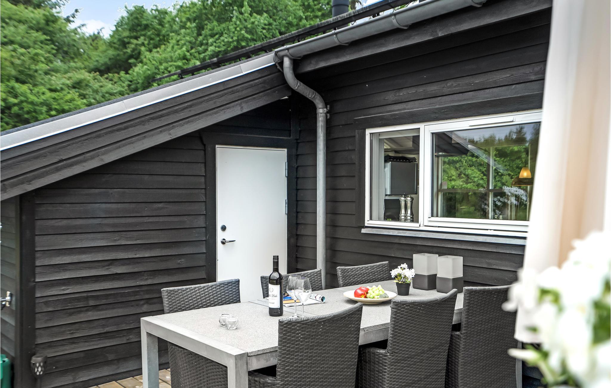 Dejligt træhus nær Gerå med stor have, spabad og adgang til fiskeri i naturskønne omgivelser.