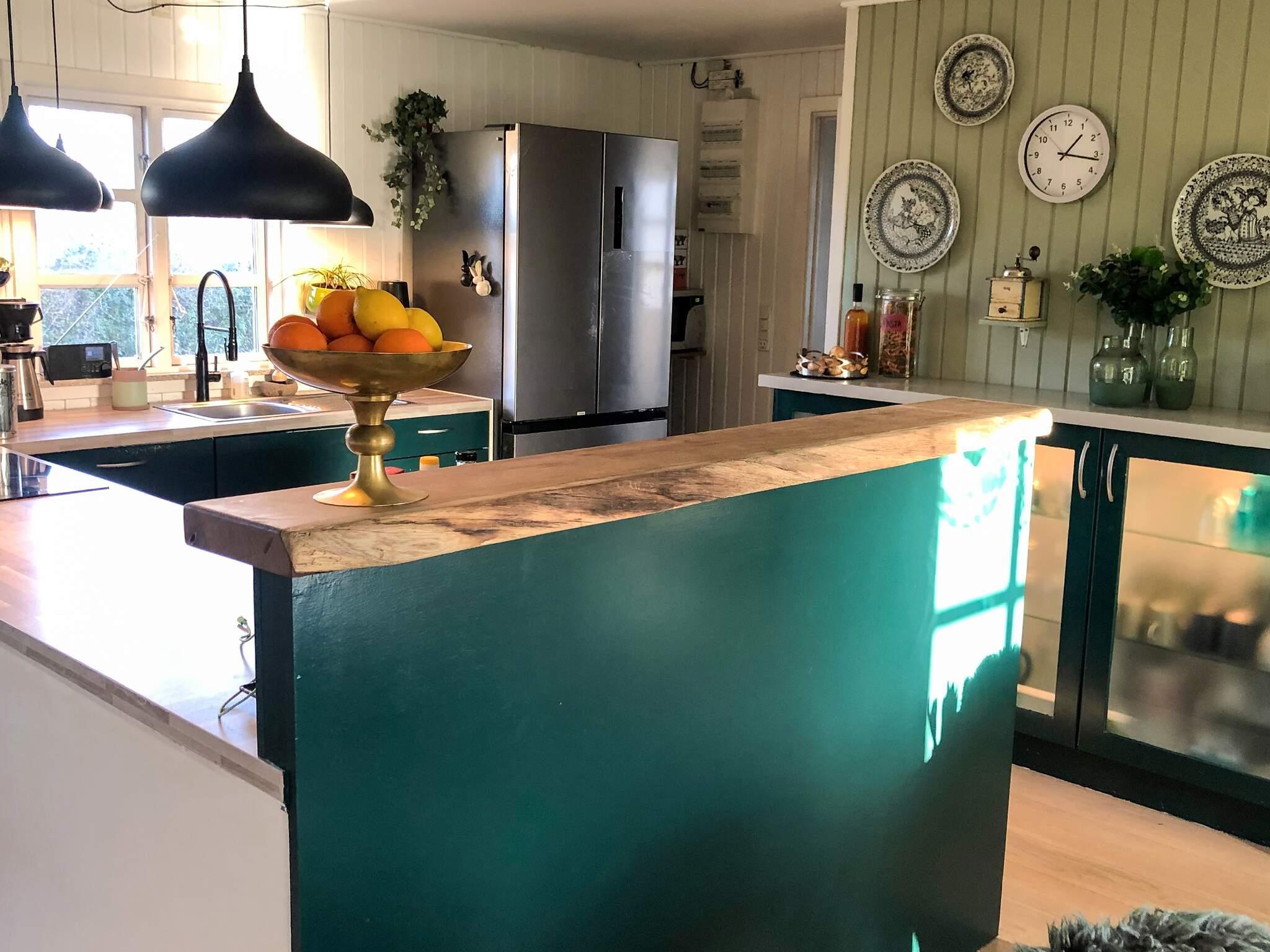 Køkken: Elkogepl., ovn, køle-frys, mikroovn, kaffemaskine, opvaskemask.