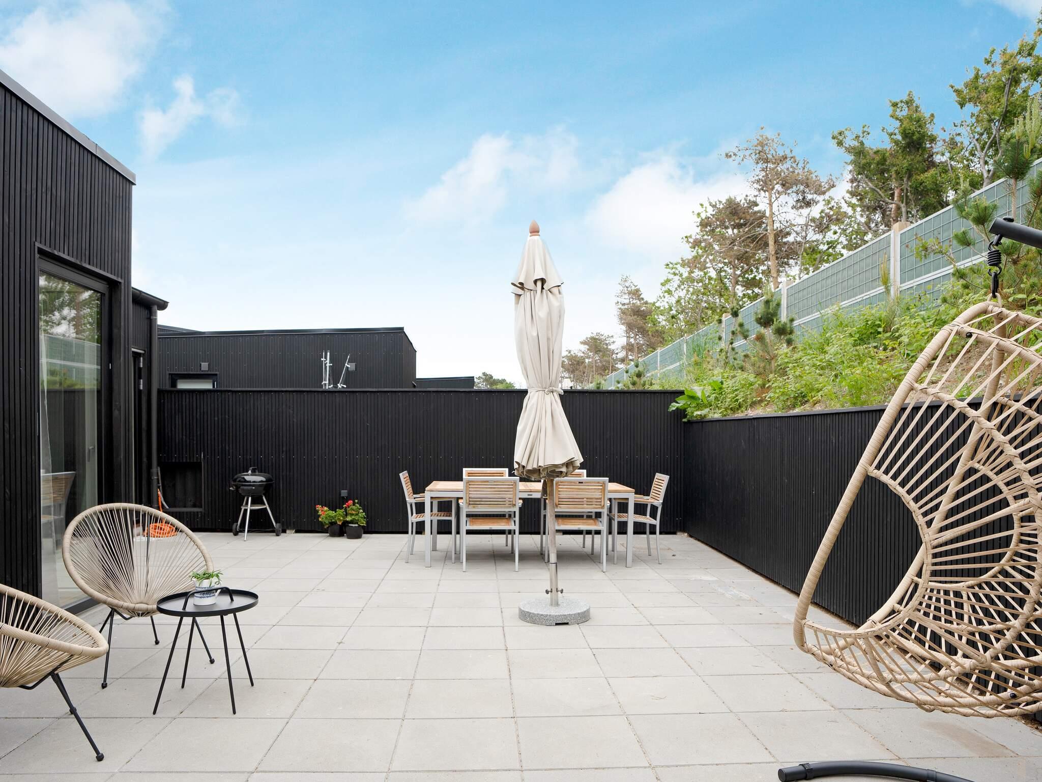 Udenfor giver en godt afskærmet terrasse med havemøbler den perfekte plads til afslapning og udendørs spisning. Til huset hører en carport med en elbil ladestation. Denne eksklusive ejendom kombinerer moderne komfort, arkitektonisk elegance og en førsteklasses beliggenhed ved havet for en luksuriøs og mindeværdig ferieoplevelse. Udlejning er ikke tilladt til unge eller arbejdsgrupper.