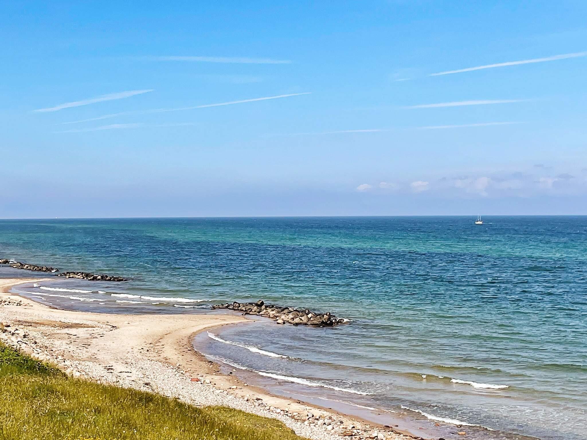 Det moderne hjem har store panoramavinduer, en lys karnap med siddepladser og åben udsigt over havet. Det rummelige køkken-alrum kan prale af højt til loftet op til højdedraget, central kogeø, opvaskemaskine, induktionskogeplade med integreret emhætte, ovn, køle/fryseskab samt ovenlys, der fylder indretningen med naturligt lysindfald. Der er gulvvarme i hele huset, hvilket skaber en varm og indbydende atmosfære. Ejendommen indeholder tre soveværelser med i alt seks senge og to badeværelser med bruser og gulvvarme. Et praktisk bryggers med en vaskemaskine-tørretumbler kombination tilføjer bekvemmelighed til længere ophold.
