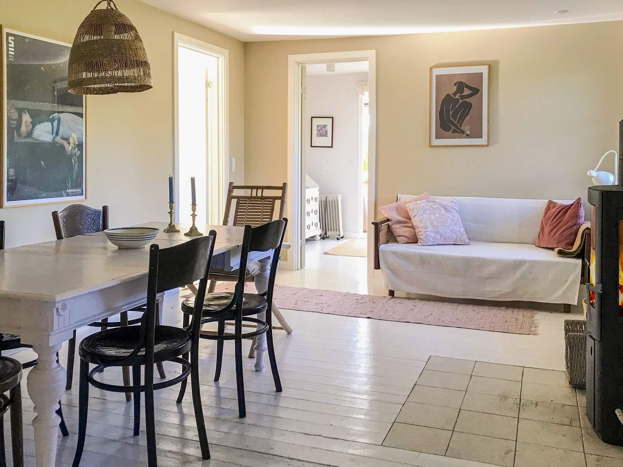 Sommerhus med dejlig have og terrasse tæt på strand og Gilleleje. Sommerhuset indeholder køkken med keramisk kogeplade, ovn, køle/frys med isterninger og opvaskemaskine. Stuen er indrettet enkelt og i moderne, hyggelig stil med TV, internet og brændeovn. Opvarmes energibesparende med luft/luft varmepumpe. Tre soveværelser fordelt på et med dobbeltseng, et med dobbeltseng og 2 enkeltsenge. Godt badeværelse med bruseniche, gulvvarme og vaske- og tørremaskine. Dejligt terrasseområde – åbent og overdækket - med havemøbler og udsigt over grunden med rig mulighed for sol, skygge, afslapning og madlavning på kulgrillen. Grunden er indhegnet, men der kan være steder i hækken, hvor små hunde kan smutte gennem.