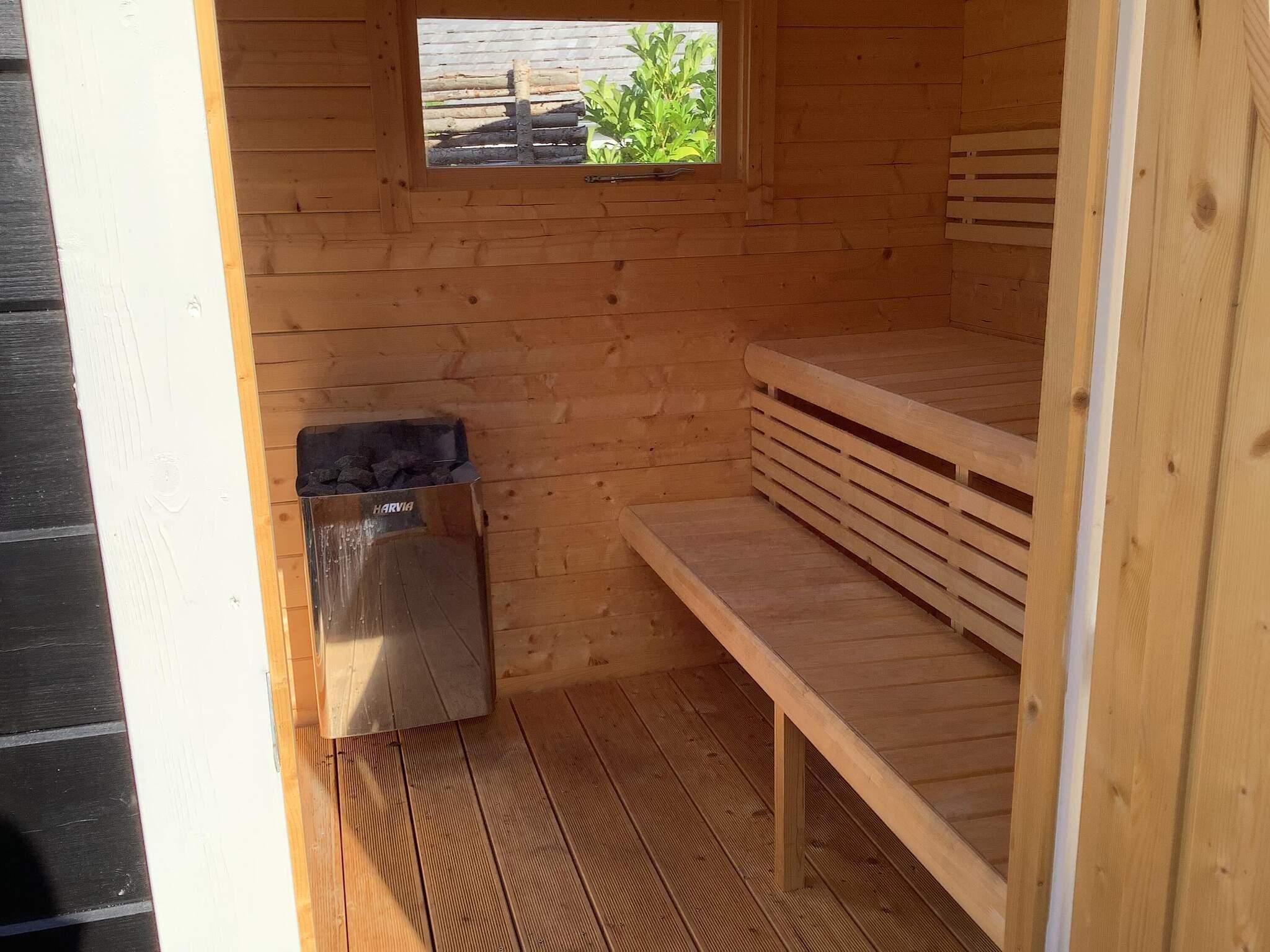Wellness-entusiaster vil nyde den udendørs sauna og en forfriskende udendørs bruser efter en dag på stranden. Terrassen er fuldt udstyret med havemøbler og en grill til afslappende aftener i den friske luft.