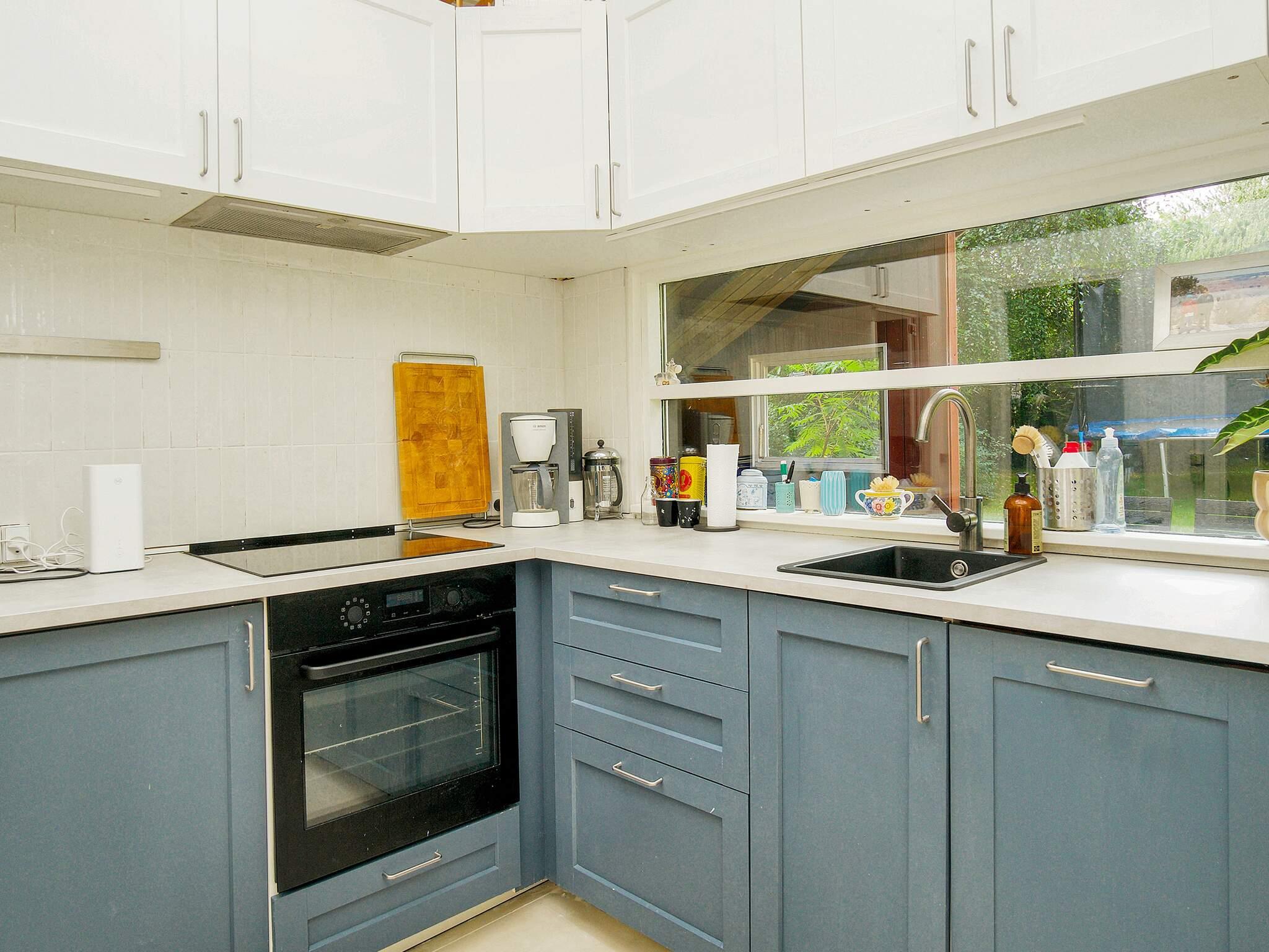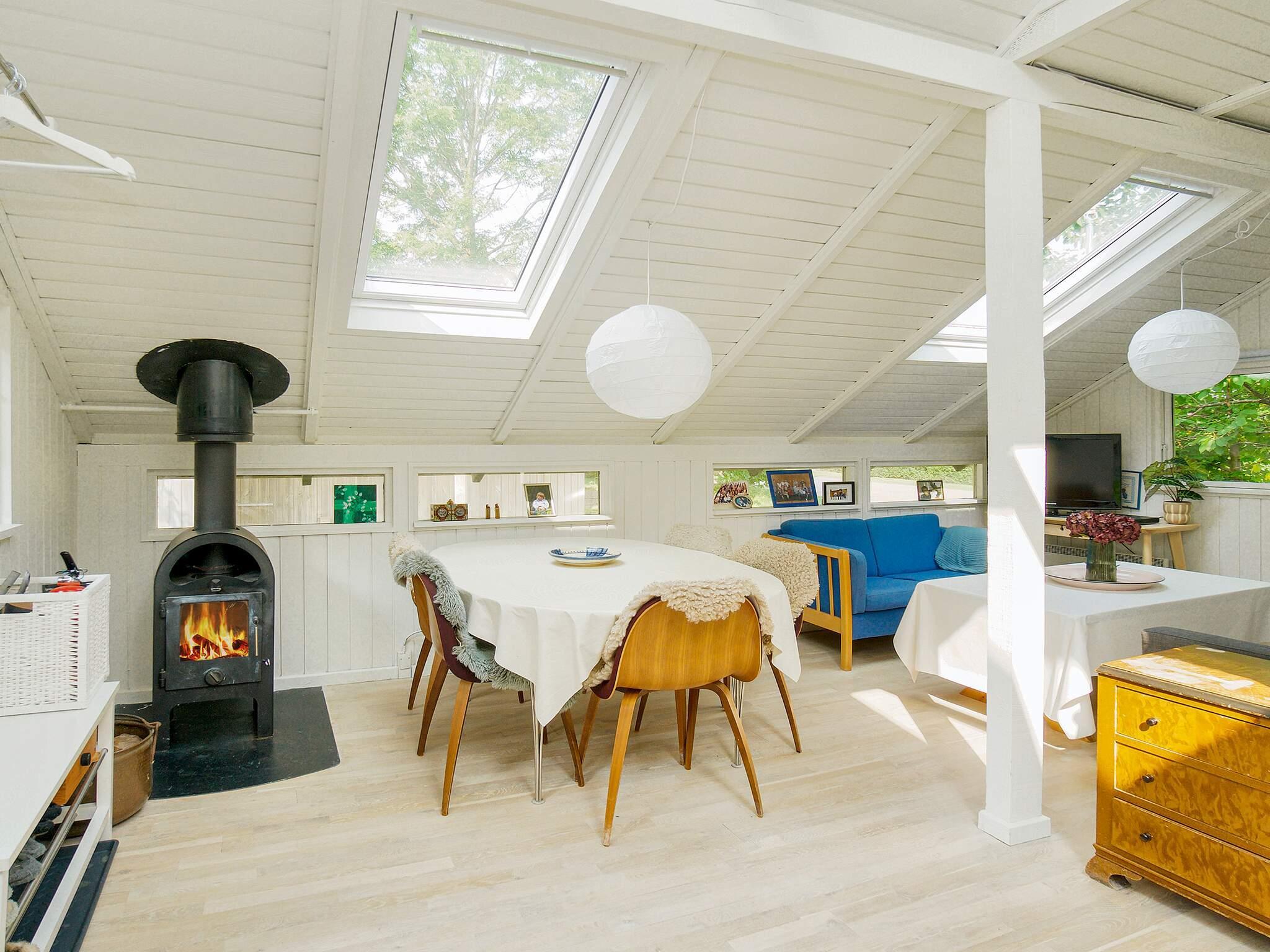 Interiøret er præget af en enkel og funktionel stil, hvor moderne bekvemmeligheder er integreret uden at gå på kompromis med husets hyggelige karakter. Køkken-alrummet er udstyret med de nødvendige faciliteter til en behagelig ferie, og stuen byder på et afslappende miljø med tv og internet.