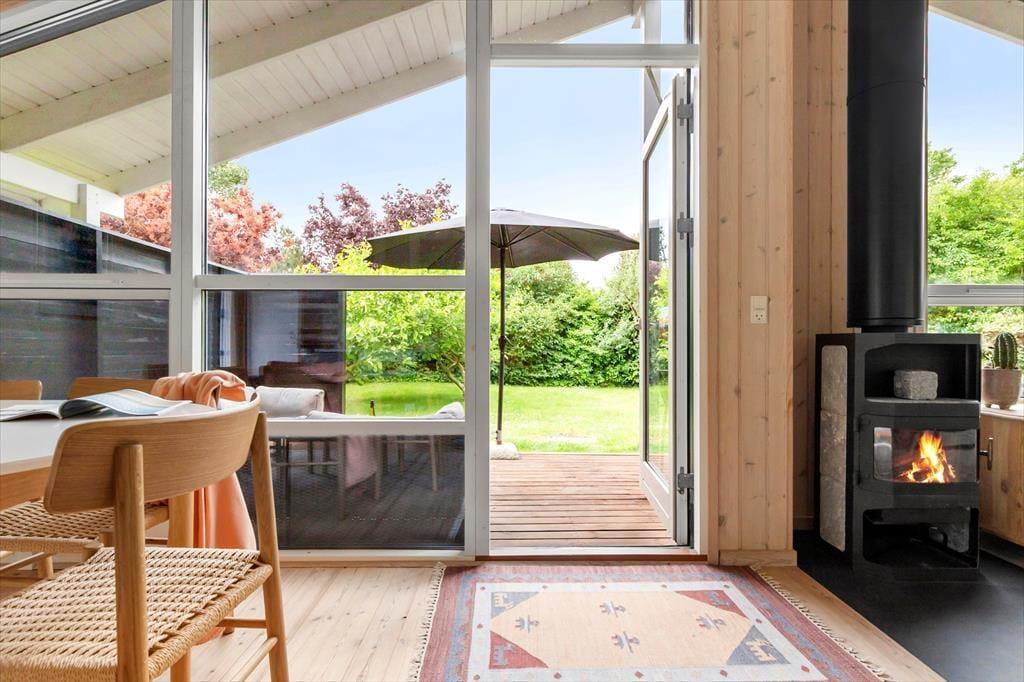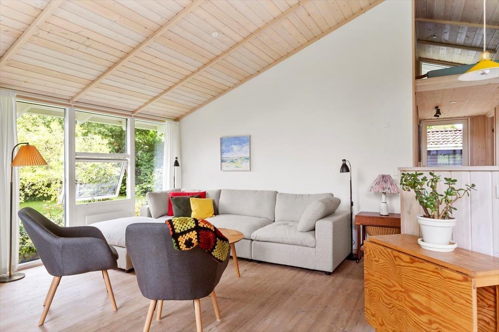Træd ind i et lyst og indbydende sommerhus, hvor stemningen er afslappet og hyggelig. Opholdsstuen danner husets hjerte med sine komfortable møbler og store vinduer, der lader dagslyset strømme ind. Her kan du nyde en rolig stund med en bog, et spil eller en god film.