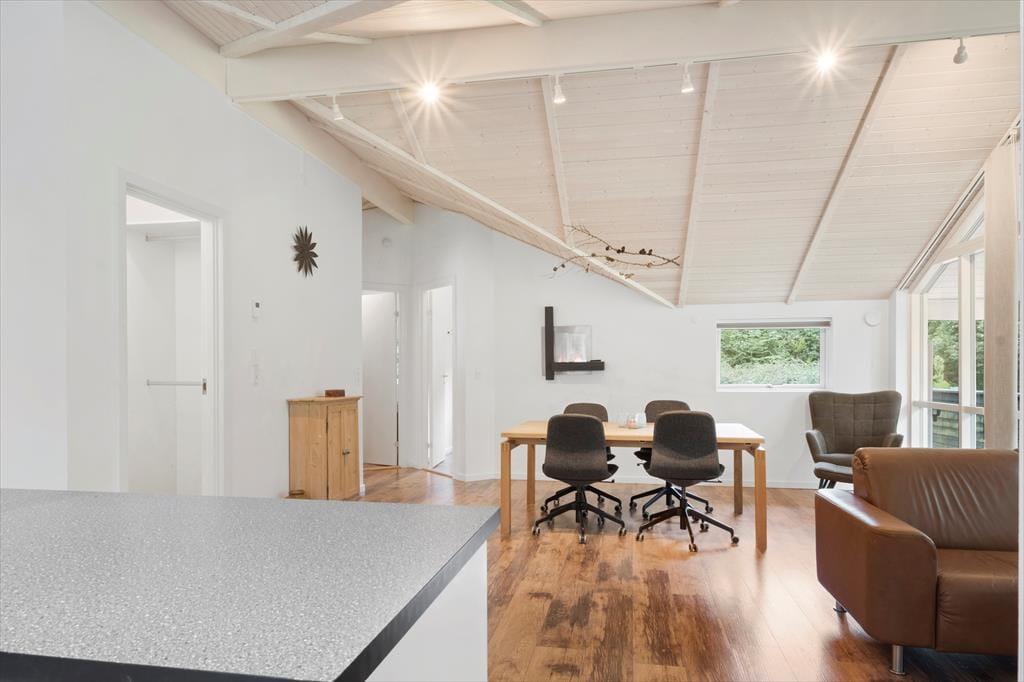 Hele huset har gulvvarme, og med en luft til vand-varmepumpe og god isolering, sikrer det lave varmeomkostninger, også om vinteren.