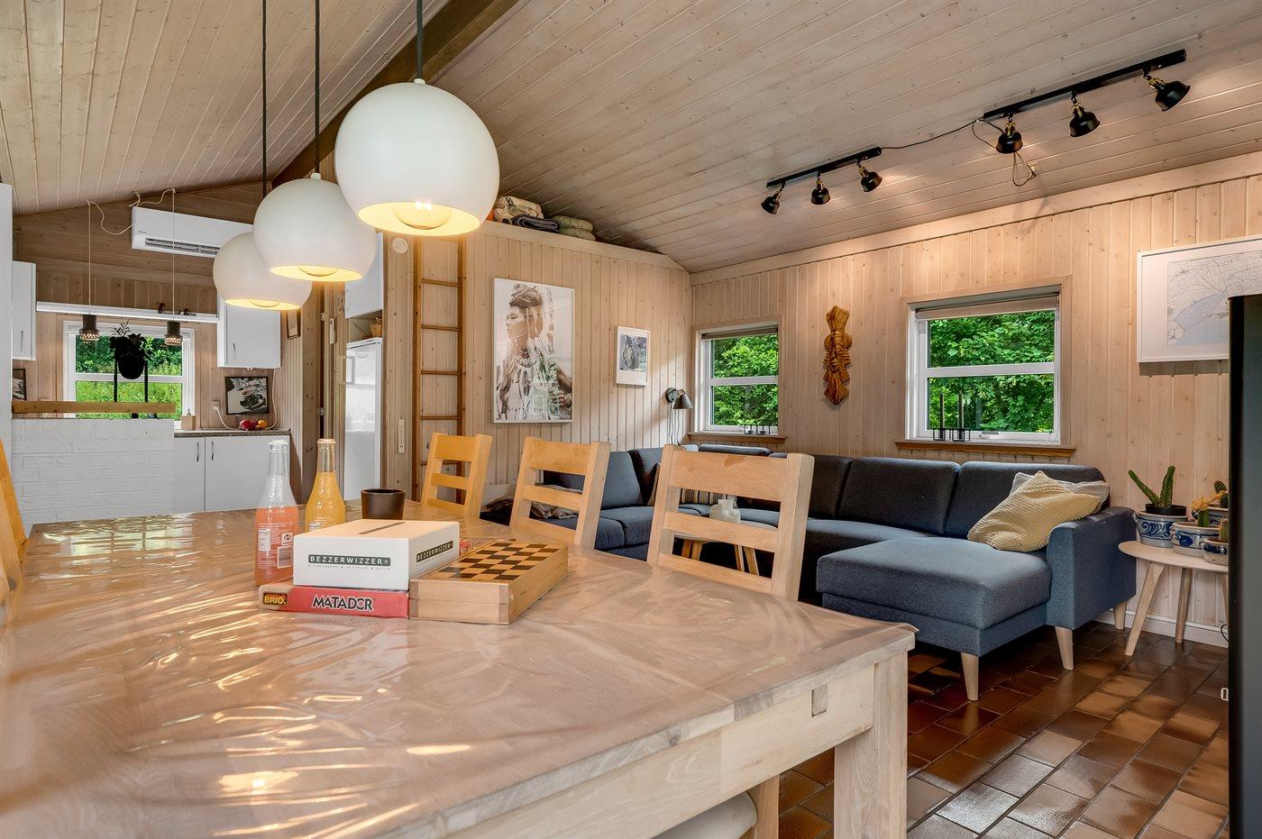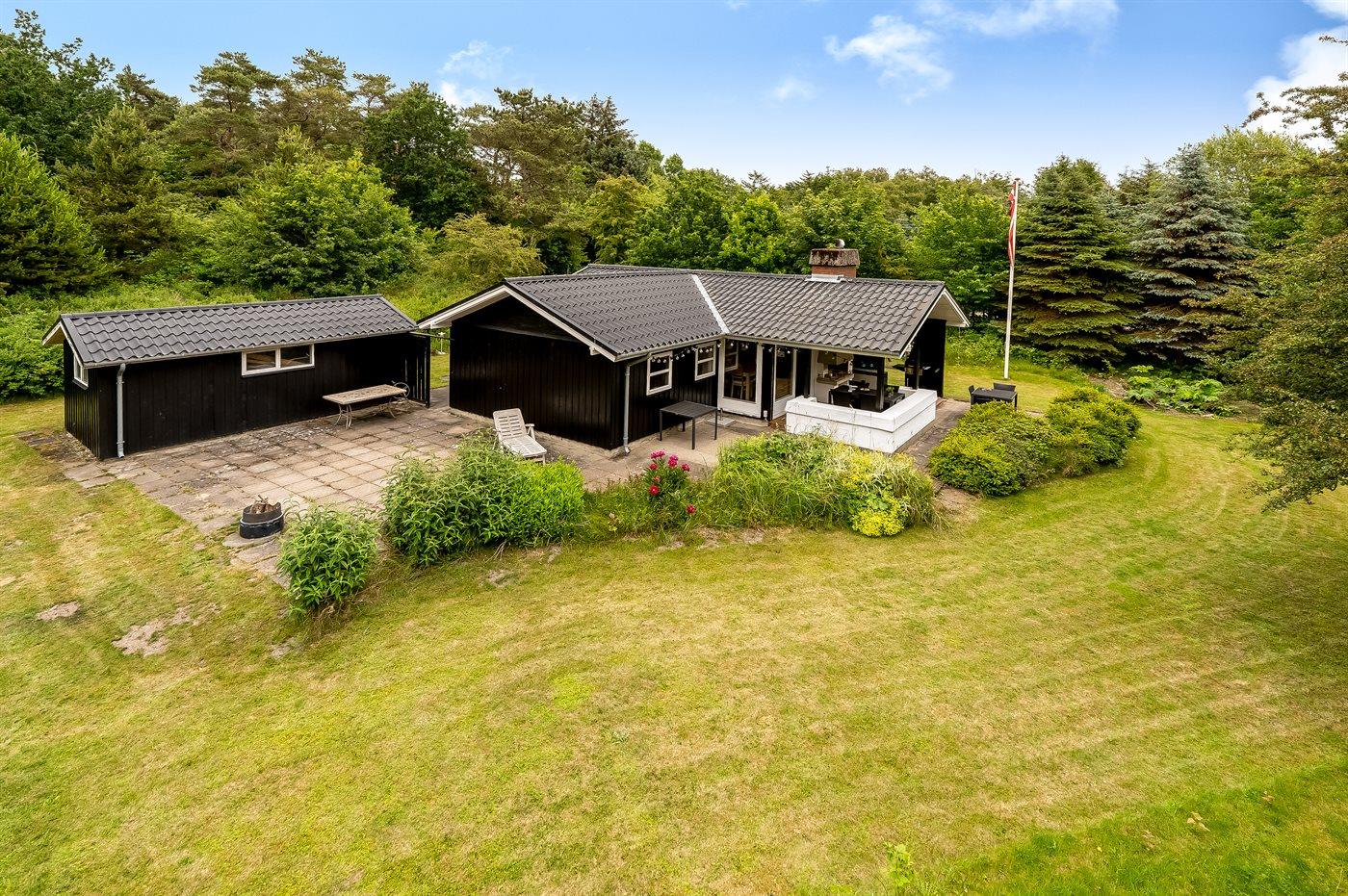 Huset er ældre, men indbydende, med en varm og hjemlig atmosfære. Det ligger på en skøn, ugeneret grund med skov og masser af plads til leg, solbadning og hyggelige aftener under åben himmel. Her kan du virkelig finde roen og nyde det enkle sommerhusliv.