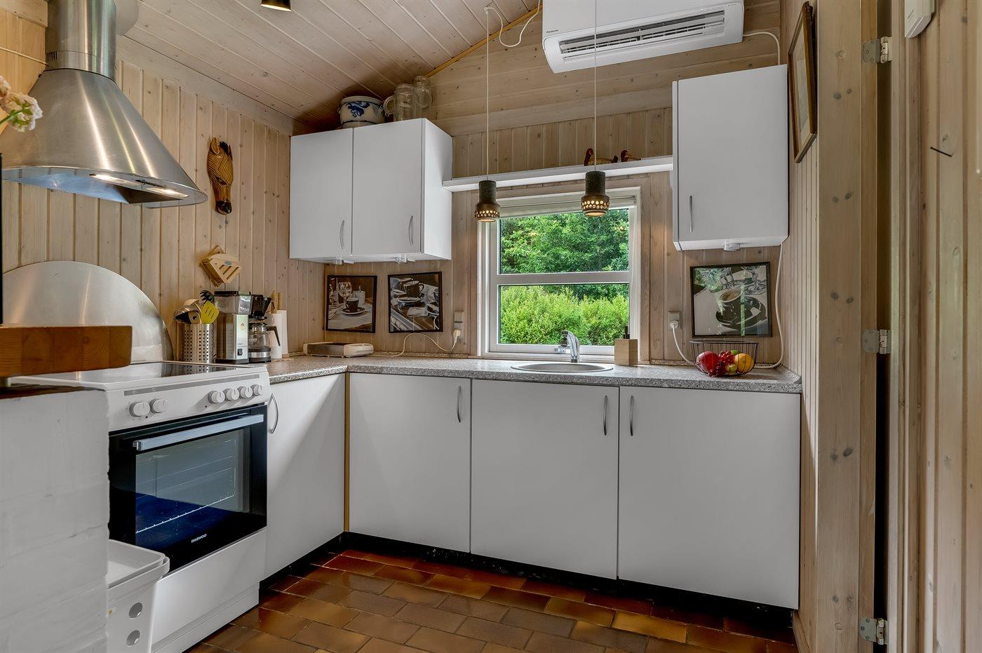 Køkkenet er udstyret med 1 køleskab. Der er 4 keramiske kogeplader, varmluftovn, mikrobølgeovn, Airfryer.