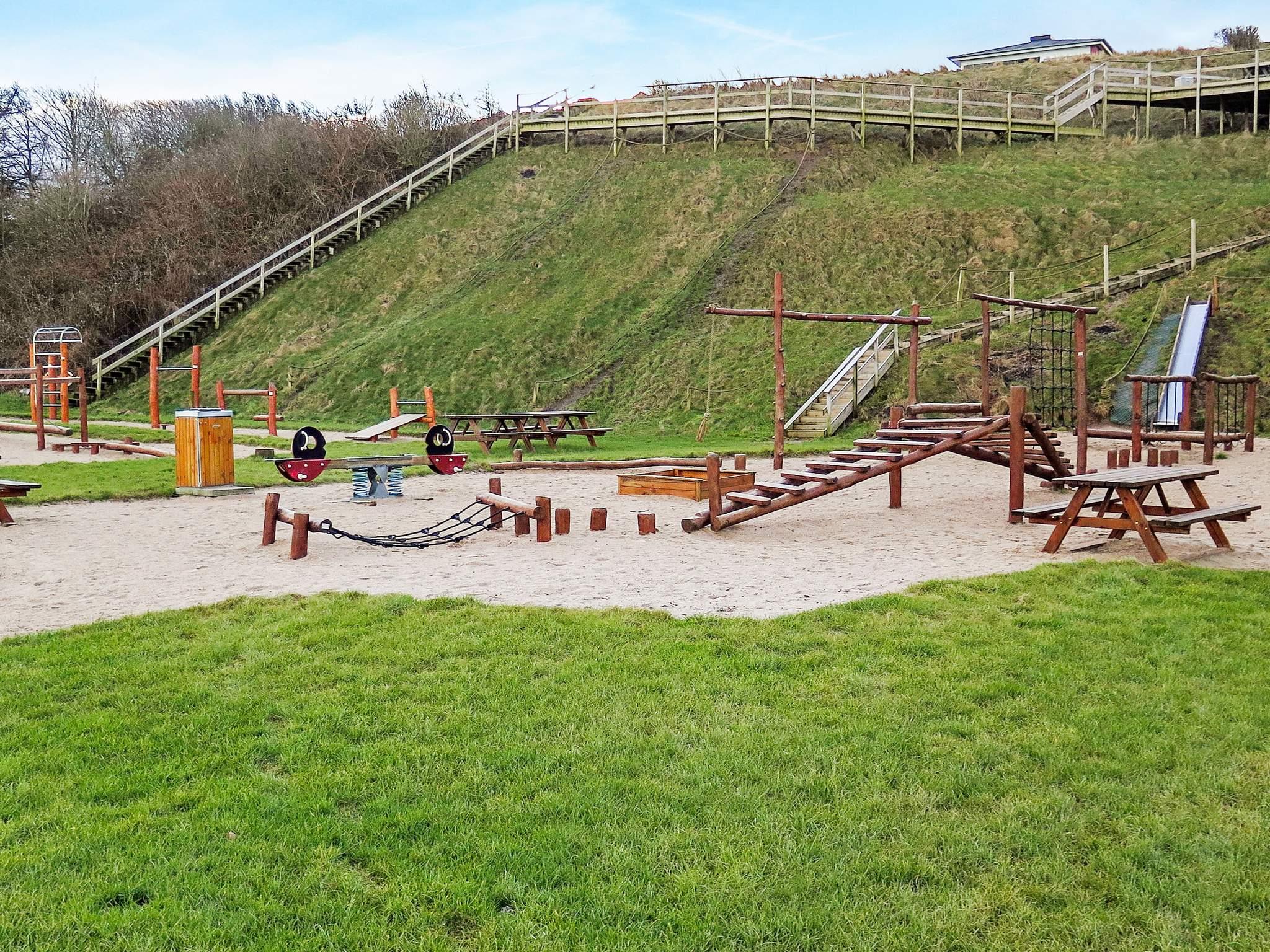Der er flere terrasser, både åbne samt overdækkede, med gode havemøbler samt gasgrill, hvor I kan nyde aftensmaden, mens solen går ned over området.