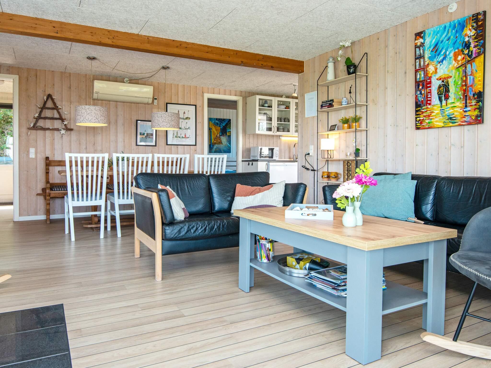 Sommerhuset er praktisk indrettet med kombineret stue/køkken. Stuen har komfortable møbler, højhastighedsinternet og et fladskærms-tv med Chromecast, så du kan streame dine egne tv-tjenester. Der er brændeovn til kølige sommeraftener eller regnfulde efterårsaftener. Huset er desuden energirigtigt med varmepumpe, hvilket giver mulighed for et lavt forbrug.