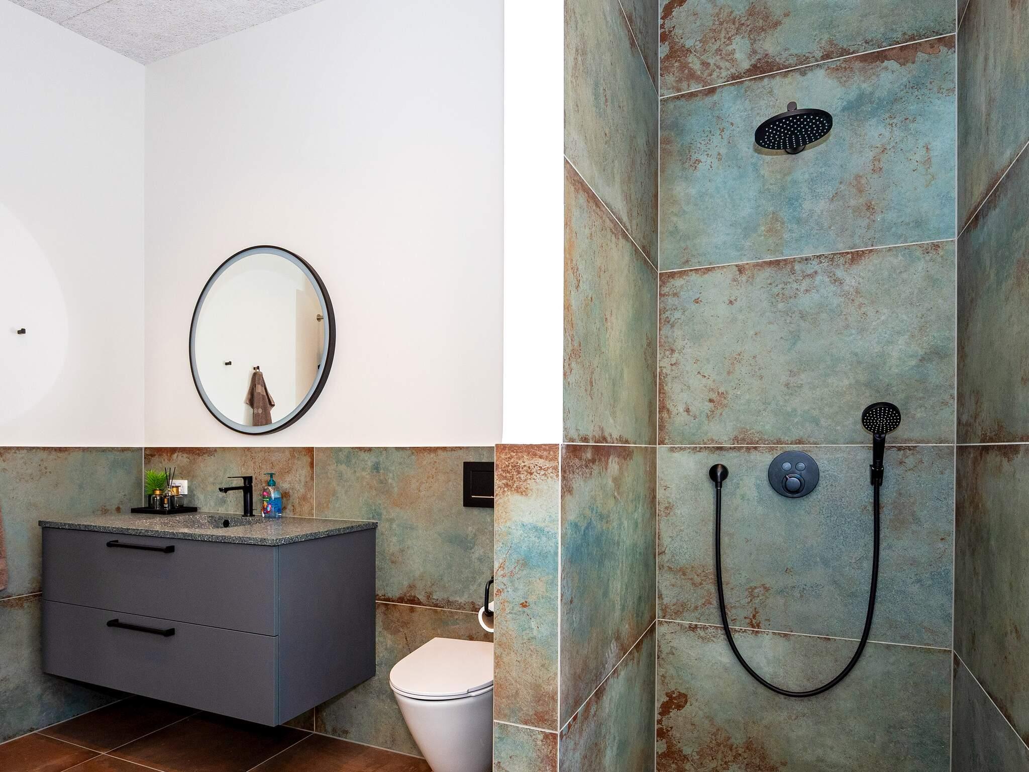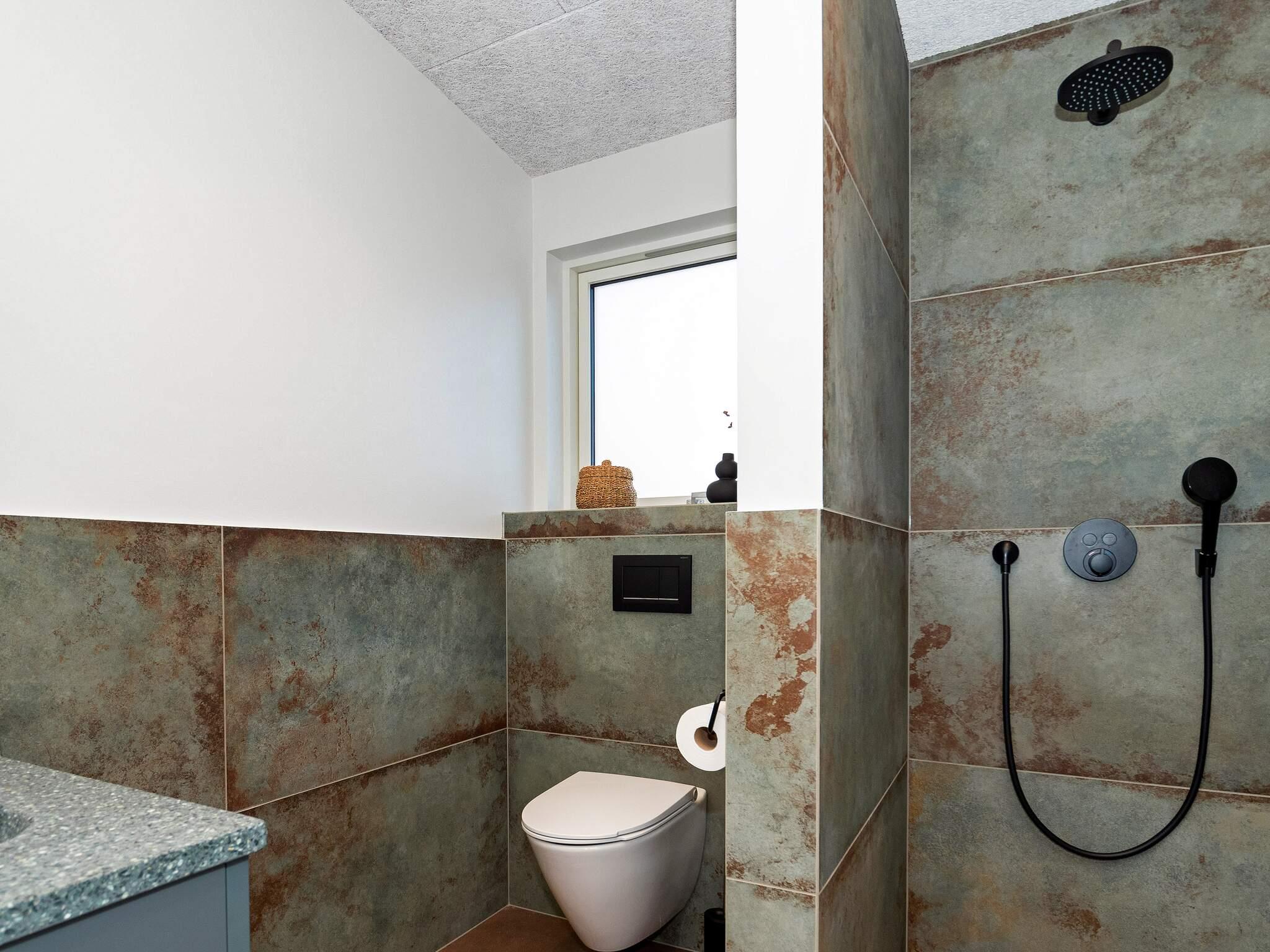 Lyst og flot kvalitetsbadeværelse med badekar, bruser og toilet. Her finder du også husets 2-personers spabad. Gæstebadeværelse af samme kvalitet med badekar, bruser og toilet.