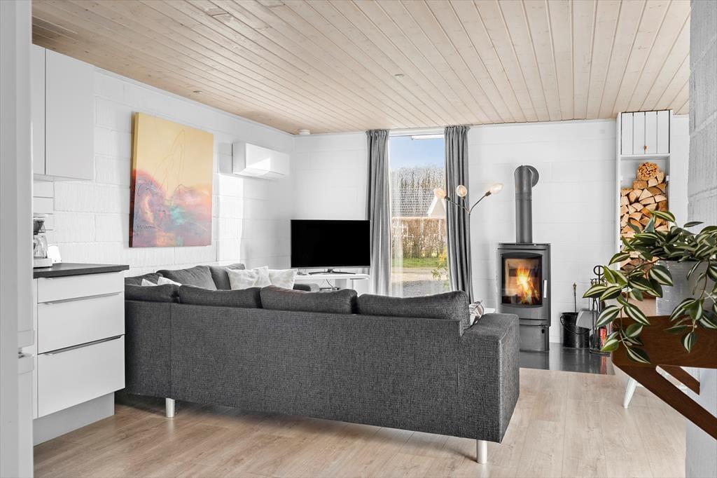 Stemningen i huset er præget af lys, varme og enkel sommerhuscharme. Indretningen er både moderne og afslappet med en god planløsning, der skaber plads til nærvær og samvær, hvad end I er en lille familie eller flere generationer samlet under samme tag. Køkken og stue ligger i åben forbindelse, så du kan tilberede aftensmaden uden at gå glip af samtalen ved spisebordet eller hyggestunden i sofaen. Når aftenen falder på, og duggen lægger sig udenfor, er det oplagt at tænde op i brændeovnen og nyde den knitren, der langsomt fylder rummet med varme og velvære. Der er sovepladser til seks personer, fordelt på hyggelige værelser, som indbyder til ro og god nattesøvn efter en dag i det fri.
