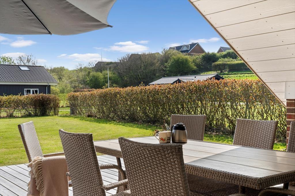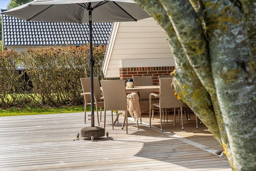 Når solen skinner over Gjellerodde, er det oplagt at rykke ferielivet udenfor – og det er der heldigvis rig mulighed for her. Sommerhusets sydvendte terrasse er et dejligt opholdssted dagen igennem, og med havemøbler og god plads omkring jer er det oplagt at nyde både morgenmaden og grillmiddagen under åben himmel. Haven er grøn og indbydende med masser af plads til boldspil, gemmeleg og fjollede stunder med børnene – og både tobenede og firbenede familiemedlemmer vil føle sig godt tilpas i de rolige omgivelser. Duften af nyslået græs, lyden af børnelatter og et glimt af fjorden i baggrunden – det er ferie, når det er allerbedst.