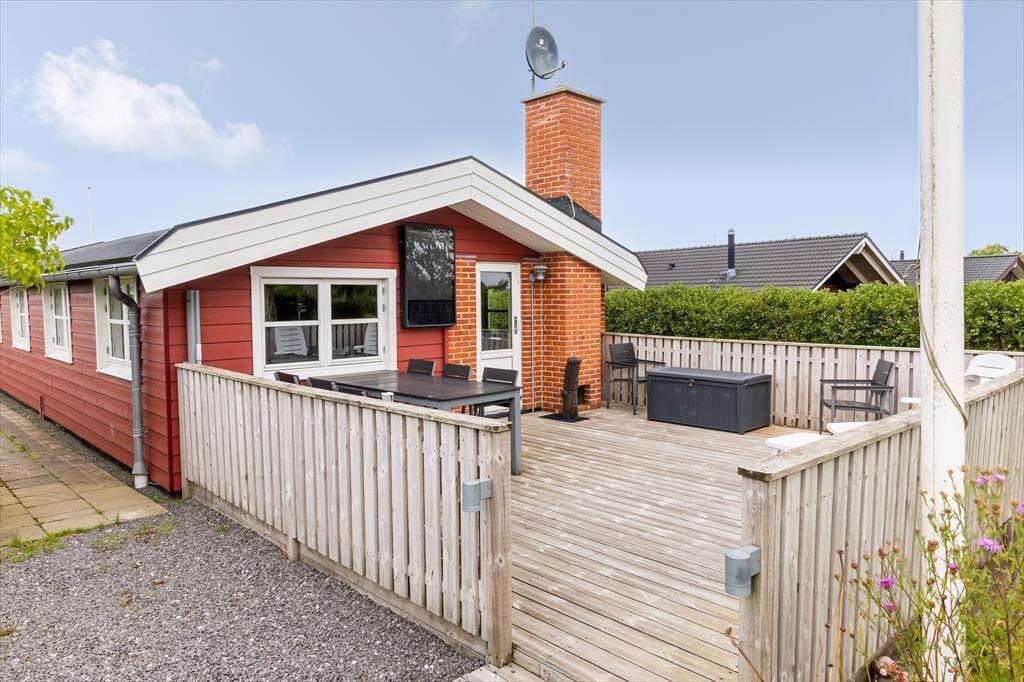 Der er terrassearealer ved både sommerhuset og annekset, så inden du slår dig ned i en havestol med kaffen, kan du lige overveje, om du helst vil sidde det ene eller andet sted. Begge terrasser er dejligt solrige, så det bliver måske svært at vælge, hvilken der er favoritten. Sommerhusets græsplæne inviterer til leg og boldspil, hvis du hellere vil være aktiv med familien end at sidde helt stille – og hvis I har helt små børn med på ferie, er det rart, at der er både en lille rutsjebane og en sandkasse på grunden.