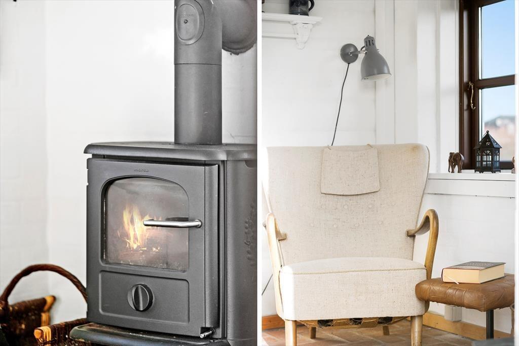 Trænger du til at fordybe dig i en bog eller strikketøjet, kan du sætte dig i den gode lænestol, der står foran brændeovnen i den lille entre – den slags rolige stunder er der for en gangs skyld tid til, når det endelig er ferie.
