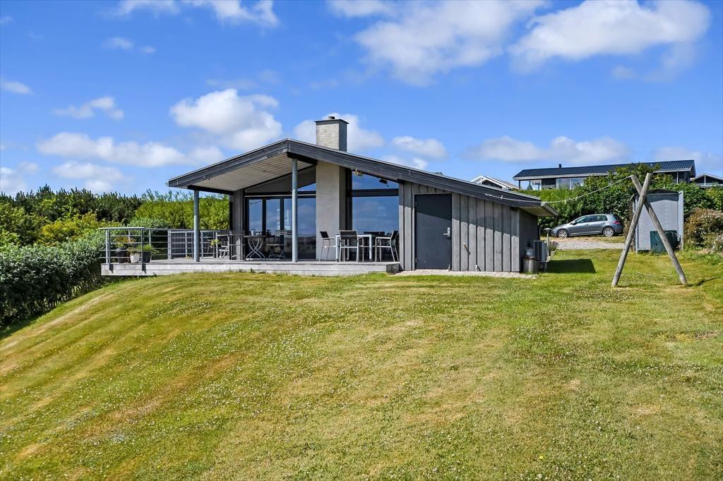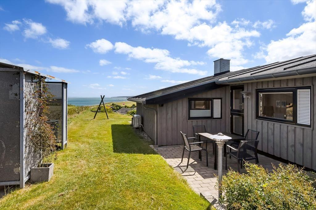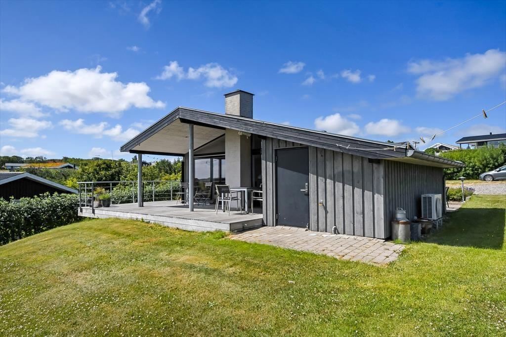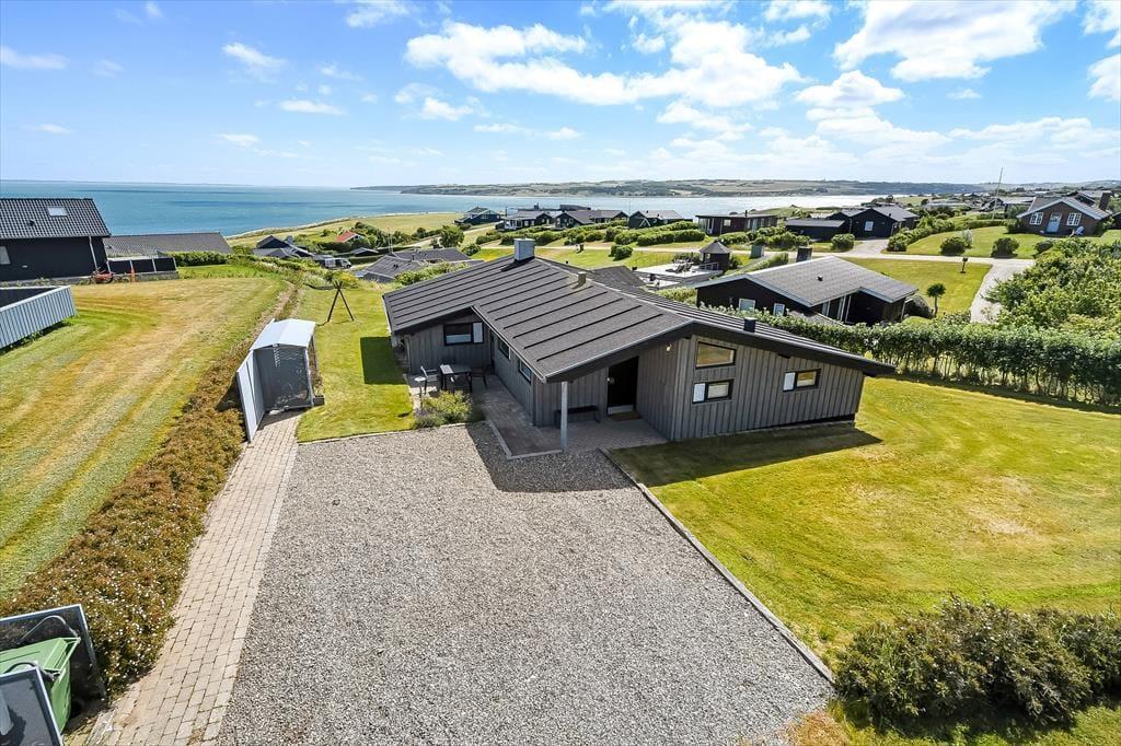 Sommerhuset ligger på en naturgrund, hvor græs og små buske giver området et roligt og autentisk præg. Her finder du flere hyggelige kroge at slå dig ned i – måske med en kop kaffe i morgensolen eller et glas vin, når aftenen falder på. Terrassedøren gør det nemt at lade udelivet glide sammen med stuen, så du altid er tæt på naturen, hvad enten du vælger at spise under åben himmel eller bare vil mærke vinden fra fjorden i håret. Børn kan lege trygt i haven, og fjordudsigten sætter den perfekte scene for ferie i et tempo, hvor hverdagen slipper sit tag. Her bliver det næsten umuligt ikke at trække vejret lidt dybere og mærke roen brede sig i kroppen.