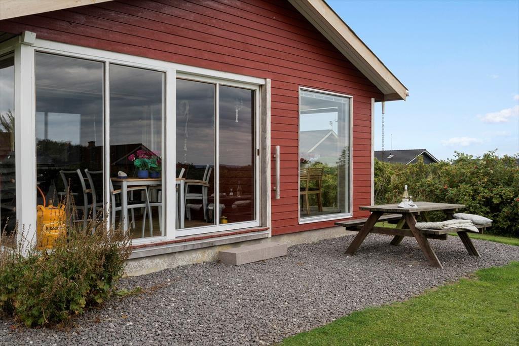 På husets private grund er der skabt fine rammer for udelivet. Haven er omkranset af hæk, så du kan nyde solen og feriedagene i fred og ro, mens børnene leger trygt på græsplænen. Til de mindste er der et gyngestativ, som hurtigt kan blive et populært samlingspunkt for leg, mens de voksne kan nyde en kop kaffe på terrassen. Her er både en sydøst- og en sydvestvendt terrasse, så du har gode chancer for at finde en solrig krog fra morgenstunden og helt ind i aftentimerne. Måske skal aftensmaden tilberedes på grillen, mens I lader dagens indtryk bundfælde sig, og hundene kan nyde at være med under åben himmel.