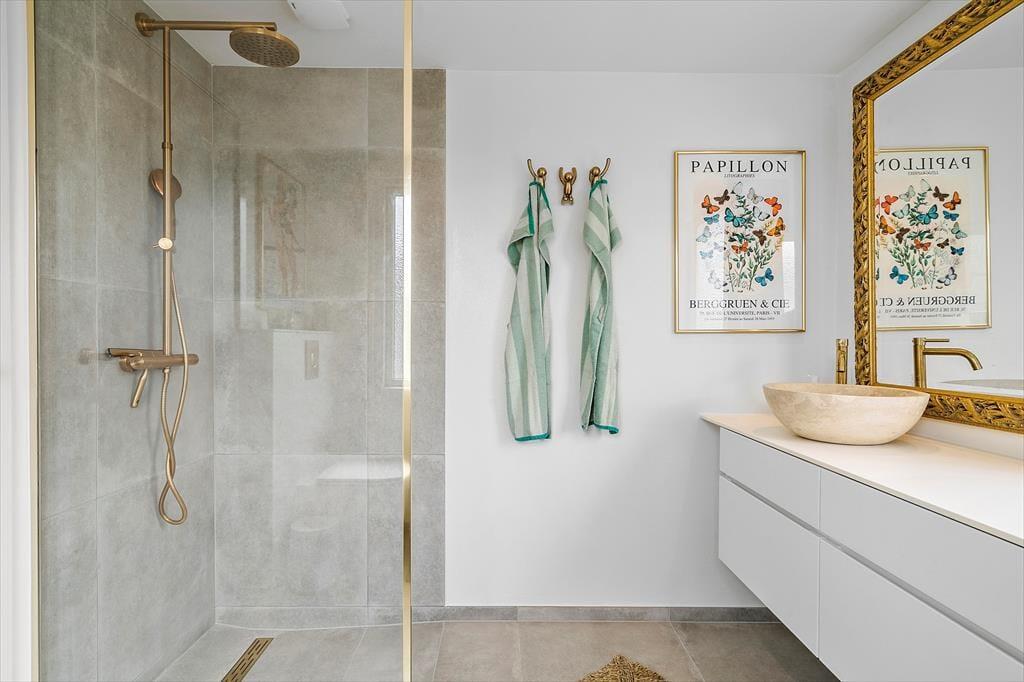 Da sommerhuset blev moderniseret i 2024, lagde man vægt på at fylde rummene med stilfuldt interiør og lyse farvetoner, og resultatet er yderst vellykket, så det er en ren fornøjelse at opholde sig inden døre. Et lækkert køkken ligger i åben forbindelse med stuen, og her er det selvfølgelig ikke kun indretningen, men også den spektakulære fjordudsigt, der vil fange dit blik. De store vinduespartier inviterer landskabet indenfor såvel som dagslyset, og ovenlysvinduerne bidrager til det lette og luftige udtryk. Den gennemførte indretningsstil kan du også nyde på husets to soveværelser og endda på badeværelset, der har et lækkert rainshower i brusenichen. Få skridt fra hoveddøren finder du for øvrigt et anneks, så alt i alt er der sengepladser til seks personer.