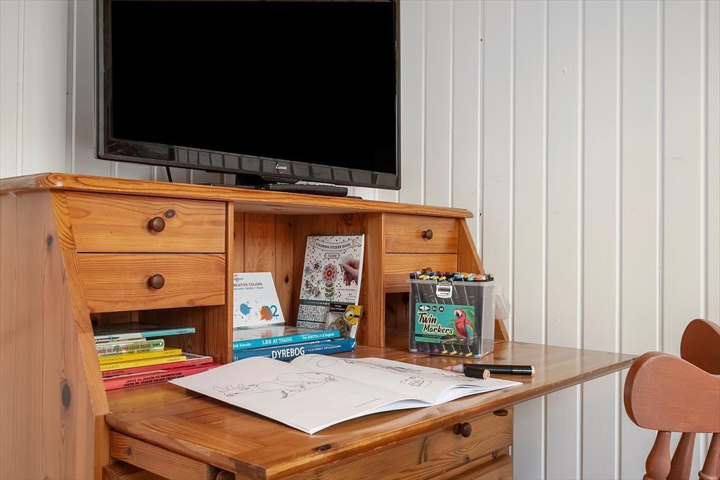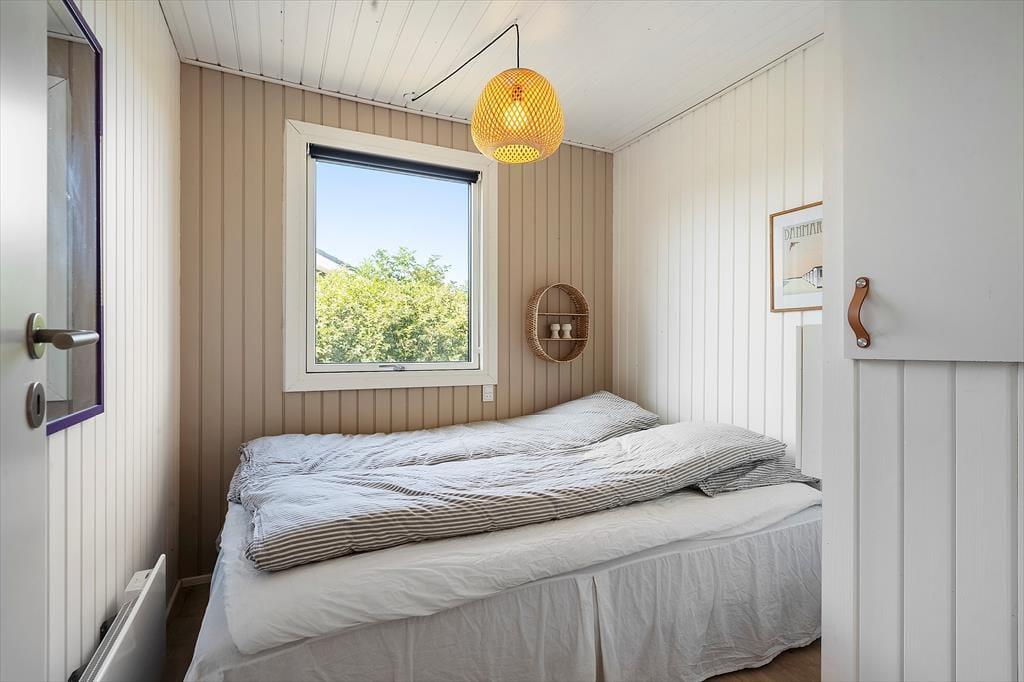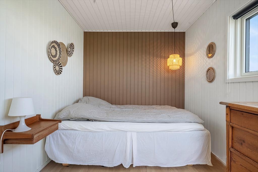 Indenfor venter en lys og imødekommende atmosfære, hvor det er let at finde sig til rette. Stuen og køkkenet ligger i åben forbindelse, så samtalerne kan flyde frit, uanset om I laver mad eller slapper af i sofaen. Brændeovnen sørger for varme og hyggelig stemning på kølige dage, mens store vinduer trækker fjordens skiftende farver og lysets spil helt ind i opholdsrummet. Sommerhuset er delvist renoveret i 2023, så du får moderne komfort kombineret med klassisk sommerhuscharme.