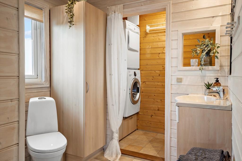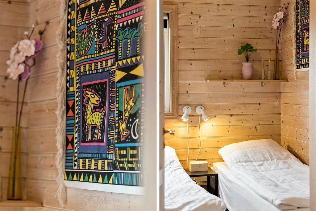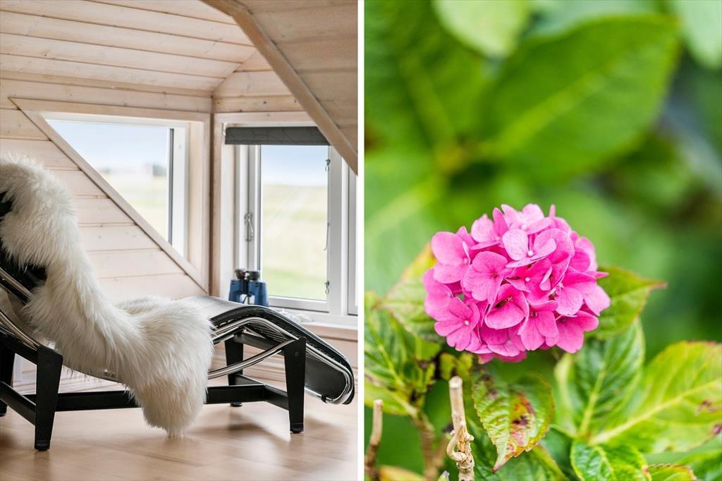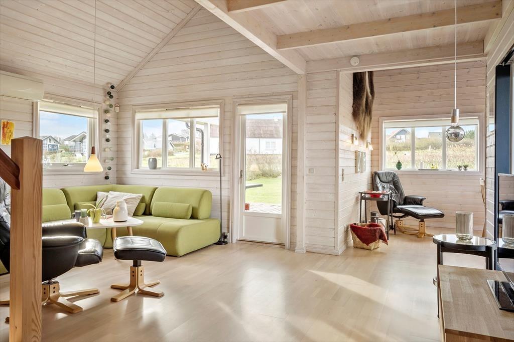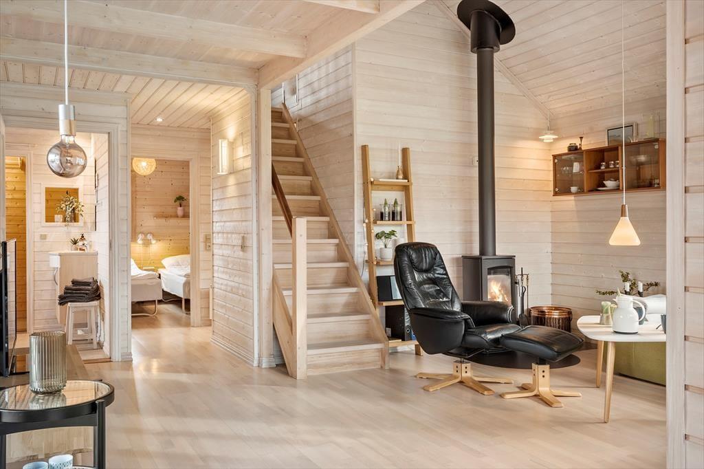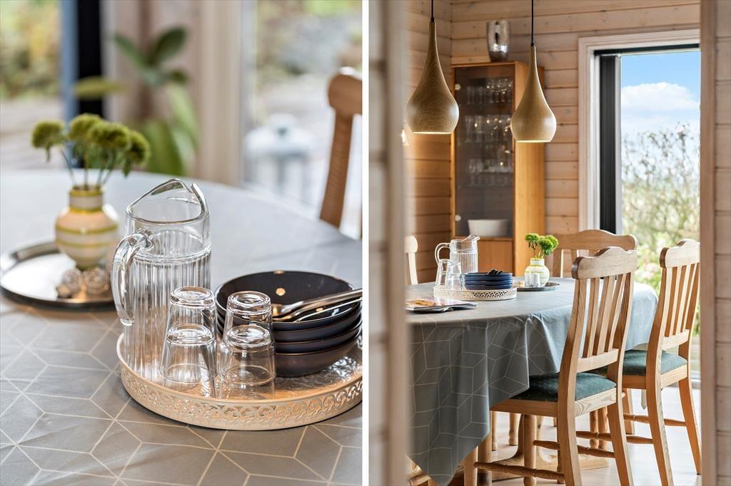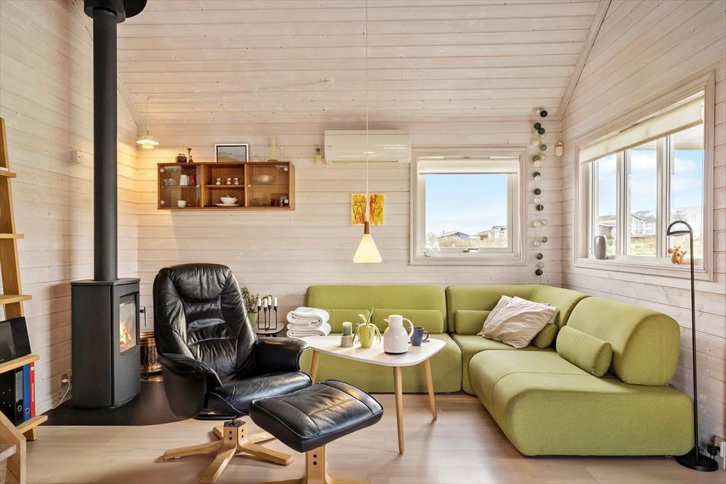 Det første, der møder dig, når du træder ind i sommerhuset, er den lyse og indbydende stemning, der strømmer gennem rummene. Her er højt til loftet – både billedligt og bogstaveligt – og med husets hyggelige hems som en ekstra bonus, er der god plads til både leg, læsning og eftermiddagslure. Det åbne opholdsrum med stue og køkken i ét er indrettet med sans for feriehygge og nærvær, og gennem de store vinduer har du udsigt til både fjord og det grønne landskab omkring sommerhuset. Indretningen er fuld af personlige detaljer og varme materialer, der understøtter følelsen af at være langt væk fra hverdagens travlhed. Her er plads til at nyde en god bog i sofaen, spille kort med familien eller lade samtalen flyde i takt med, at kaffeduften breder sig fra køkkenet.