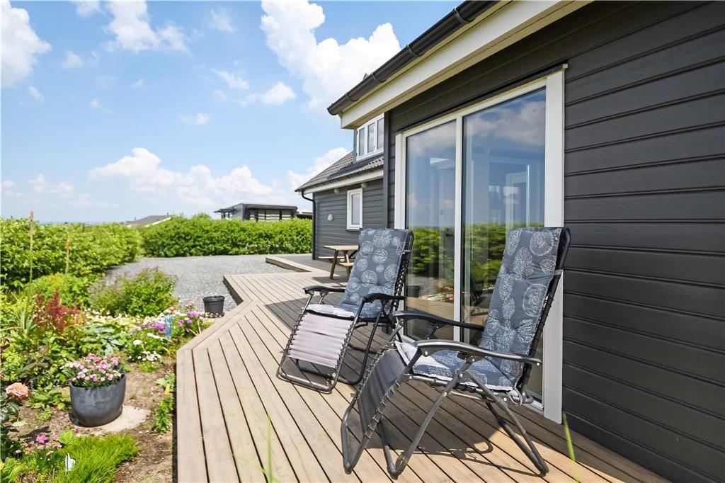 Når solen skinner over Gjellerodde, flytter ferielivet nemt udenfor – og det er der rig mulighed for på Myntevej 6 B. Her venter en stor, delvist overdækket træterrasse, hvor du både kan finde læ for vinden og sidde i skyggen på de varmeste dage. Terrassen er som skabt til lange måltider under åben himmel, og børnene vil elske den tilhørende græsplæne, som indbyder til mange timers leg, boldspil og måske endda små konkurrencer. Har du hund med, er her også god plads til at den kan boltre sig i de trygge rammer omkring sommerhuset. Uanset om dagen starter med morgenkaffe i solopgangens skær eller slutter med et glas vin i de lune aftentimer, giver terrassen og den grønne have dig masser af muligheder for at nyde sommerlivet i fulde drag.