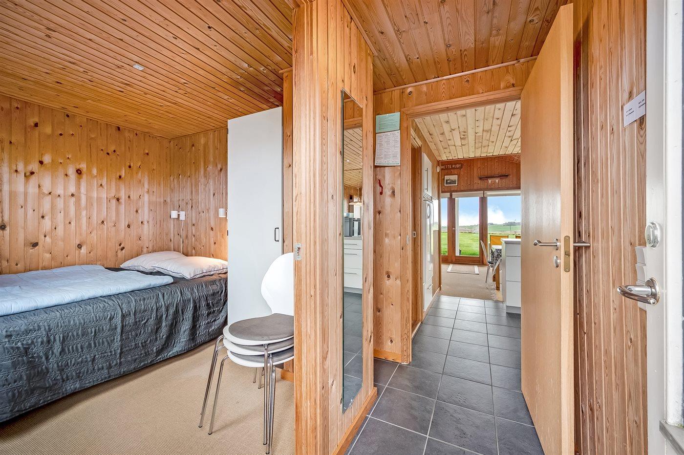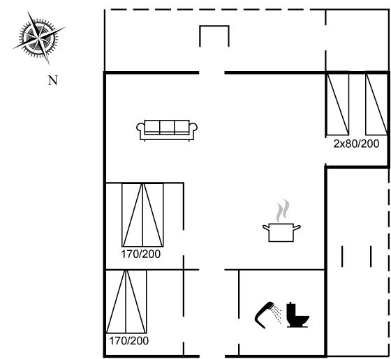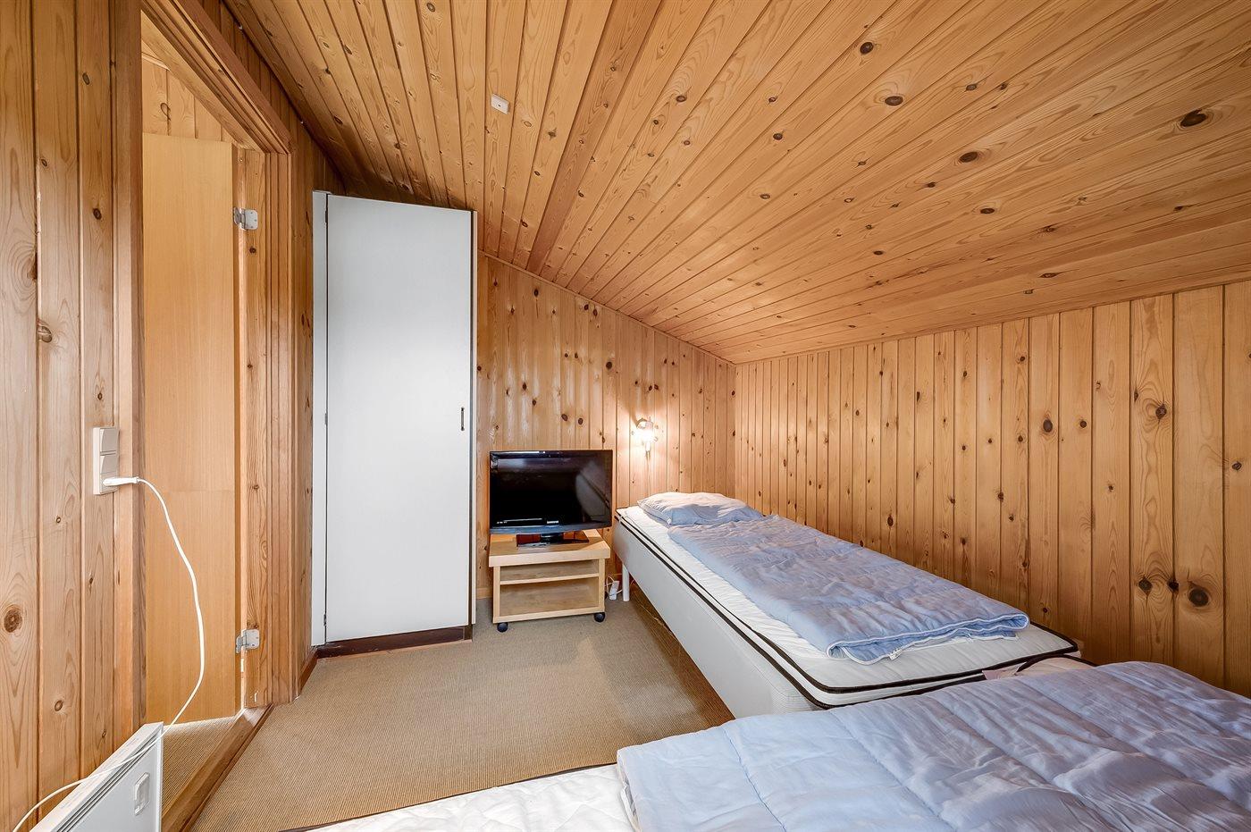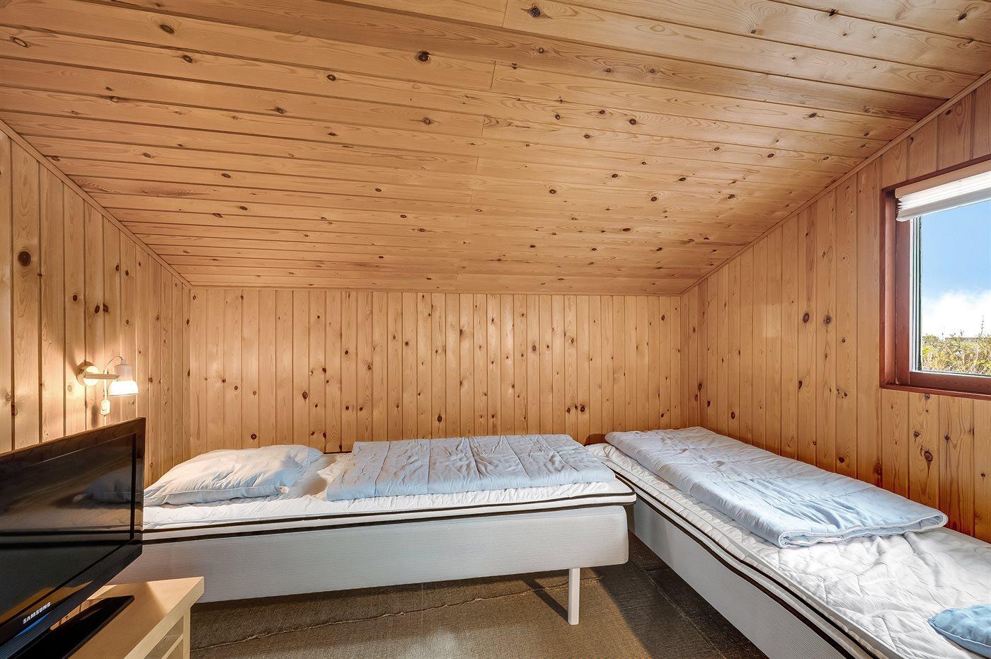 Der er i alt 3 soveværelser. Sovepladserne fordeler sig på: 4 sovepladser i dobbeltsenge. 2 sovepladser i enkeltsenge.