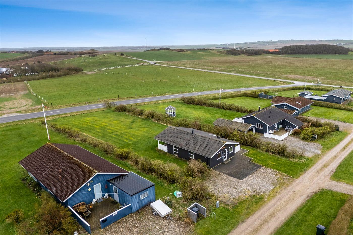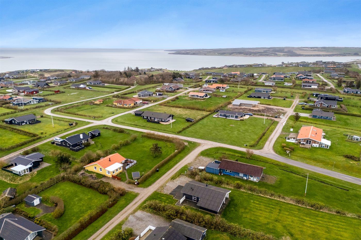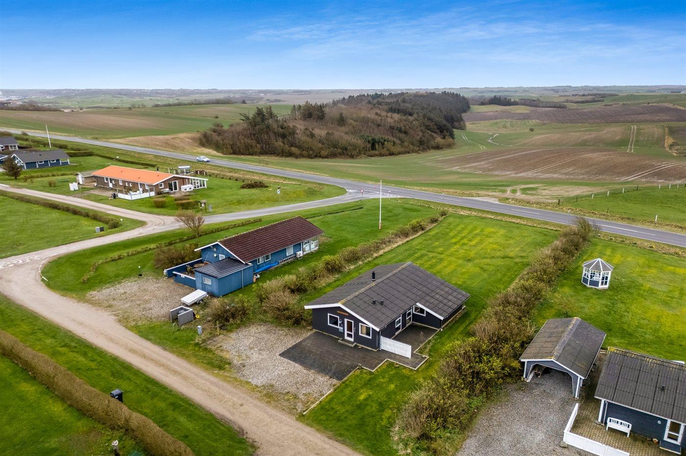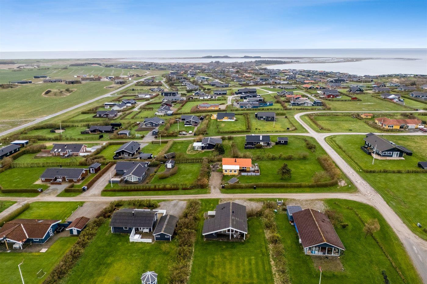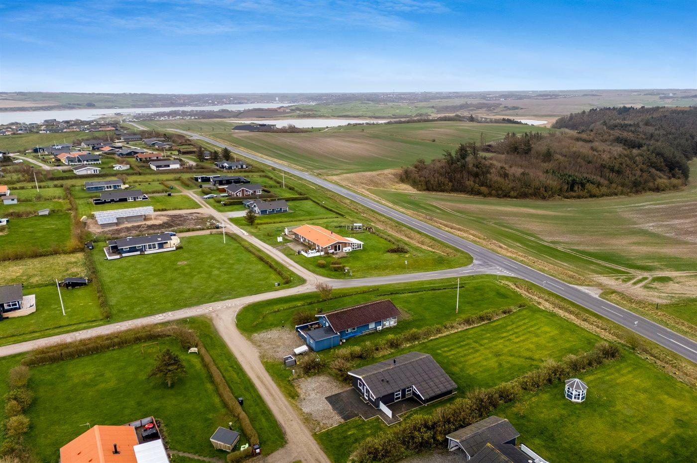 Ferieboligen er beliggende på en 978 m² stor klitgrund. Der er 700 m til fjorden. Nærmeste forretning er beliggende i en afstand af 5000 m. Til ferieboligen hører åbent terrasseareal. Desuden er der overdækket terrasse. Parkering ved ferieboligen.