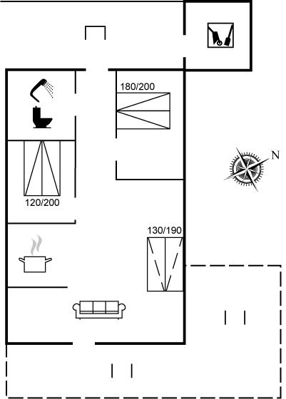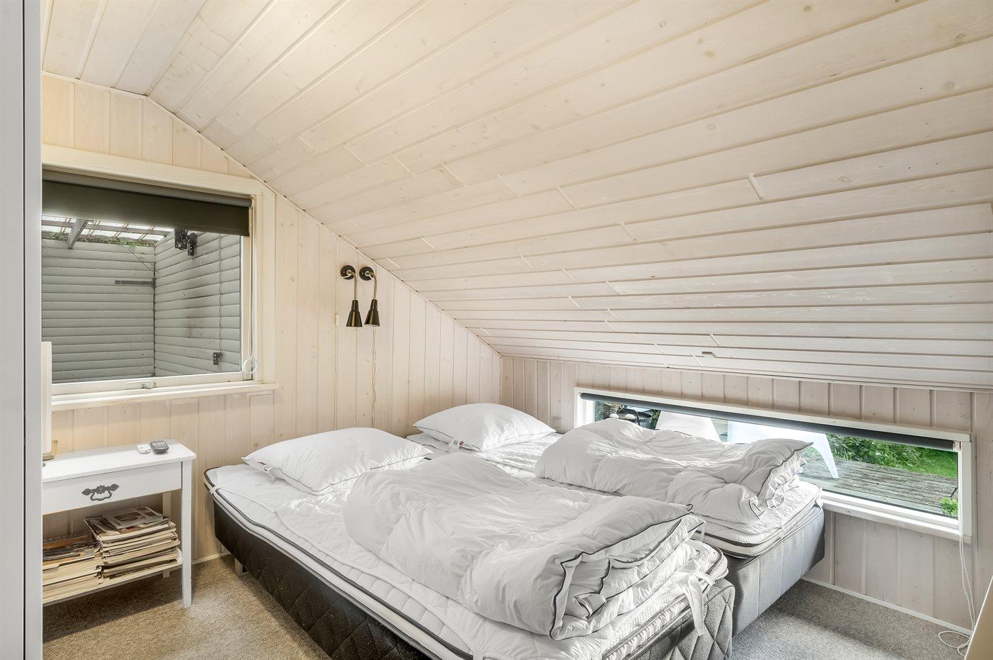 Der er i alt 2 soveværelser. Sovepladserne fordeler sig på: 4 sovepladser i dobbeltsenge. 2 sovepladser i sovesofa (dobbelt). Derudover er der 1 stk. barneseng.