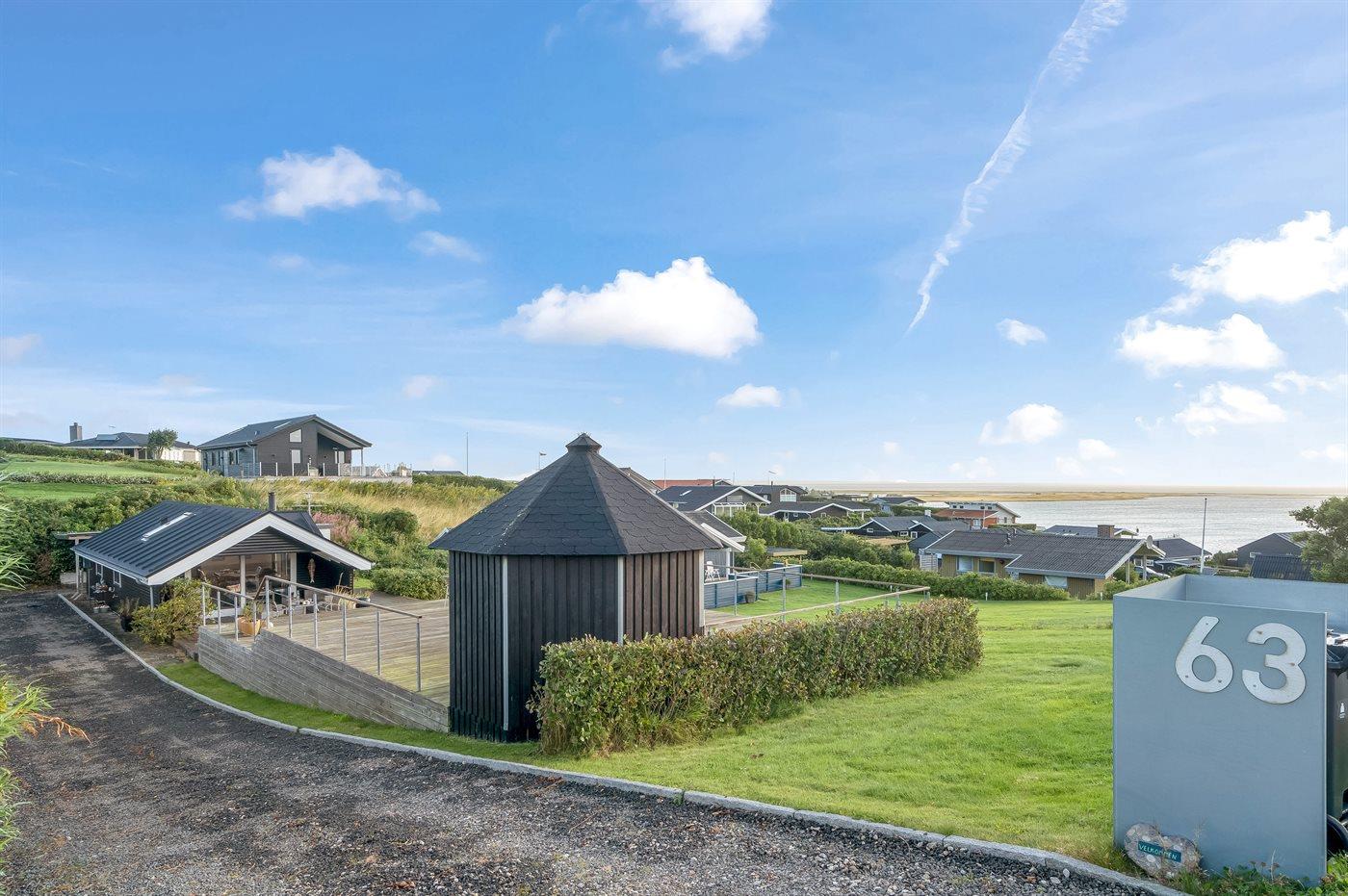 Ferieboligen er beliggende på en 830 m² stor naturgrund. Der er 250 m til fjorden. Nærmeste forretning er beliggende i en afstand af 250 m. Til ferieboligen hører 50 m² terrasseareal. Desuden er der 8 m² overdækket terrasse. Der er redskabsrum. Parkering ved ferieboligen.