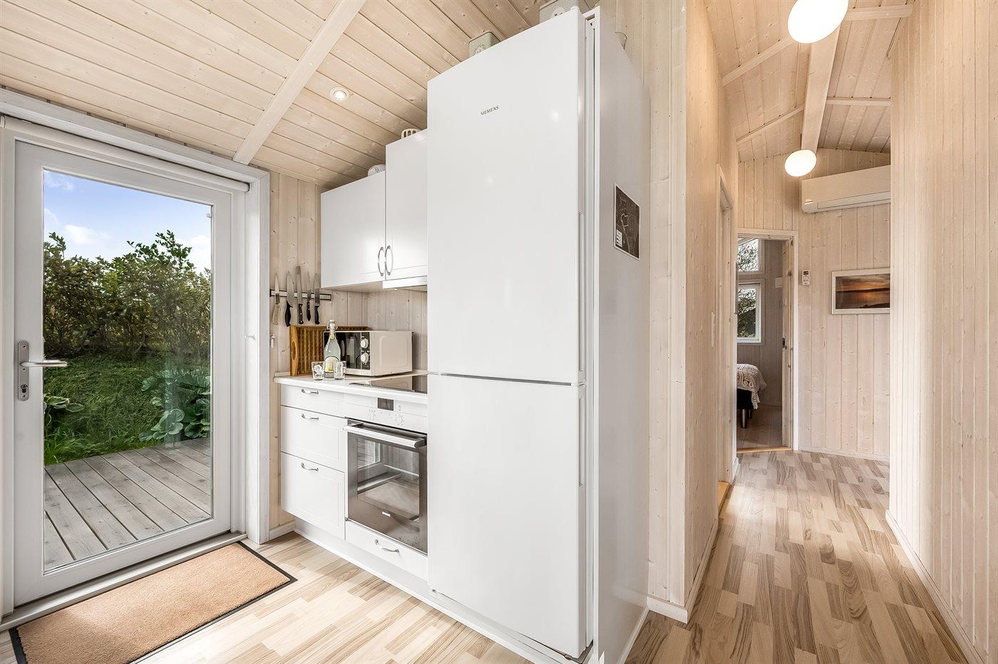 Køkkenet er udstyret med 1 køleskab. Der er 4 induktionskogeplader, varmluftovn, mikrobølgeovn samt opvaskemaskine.