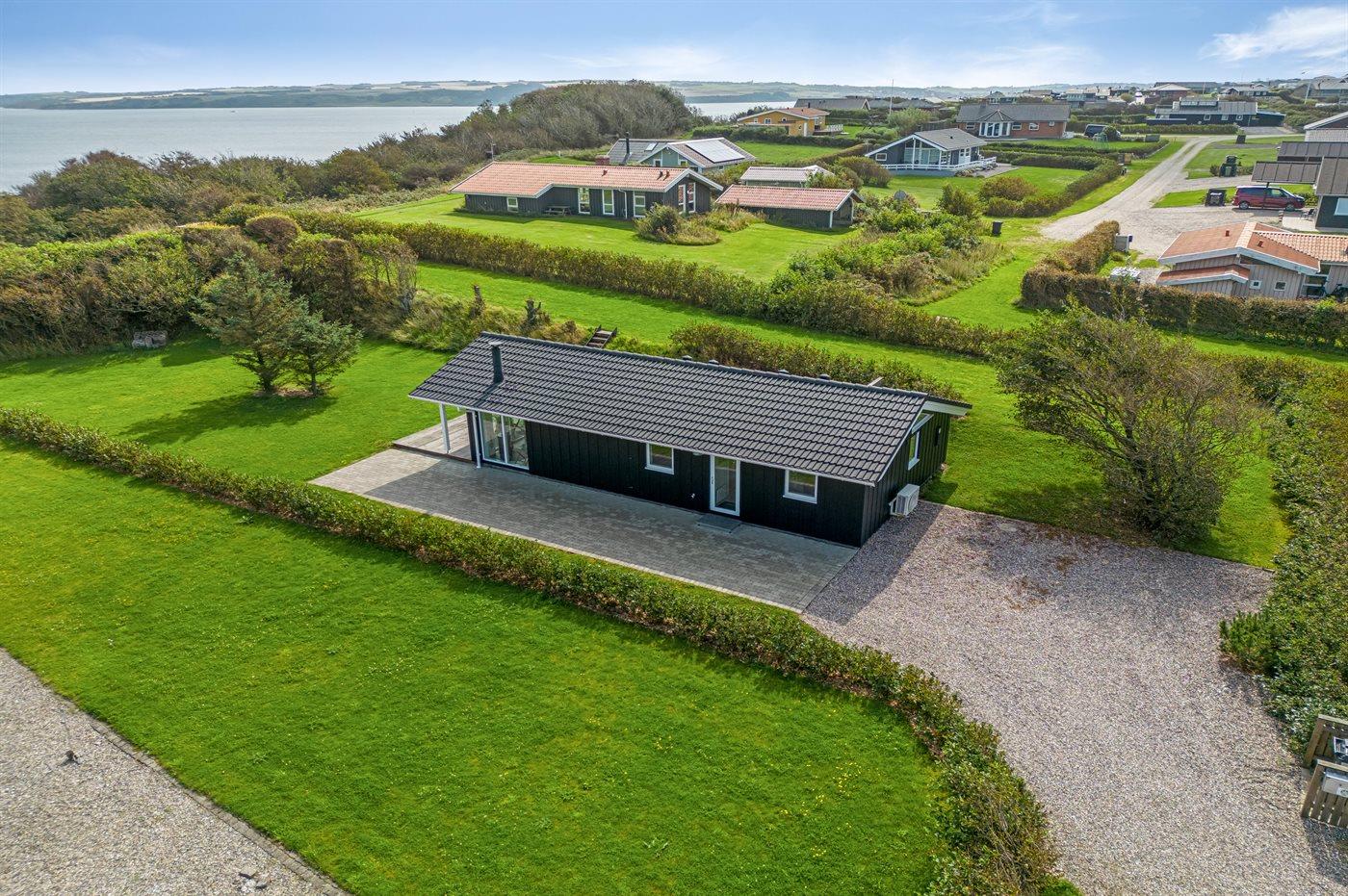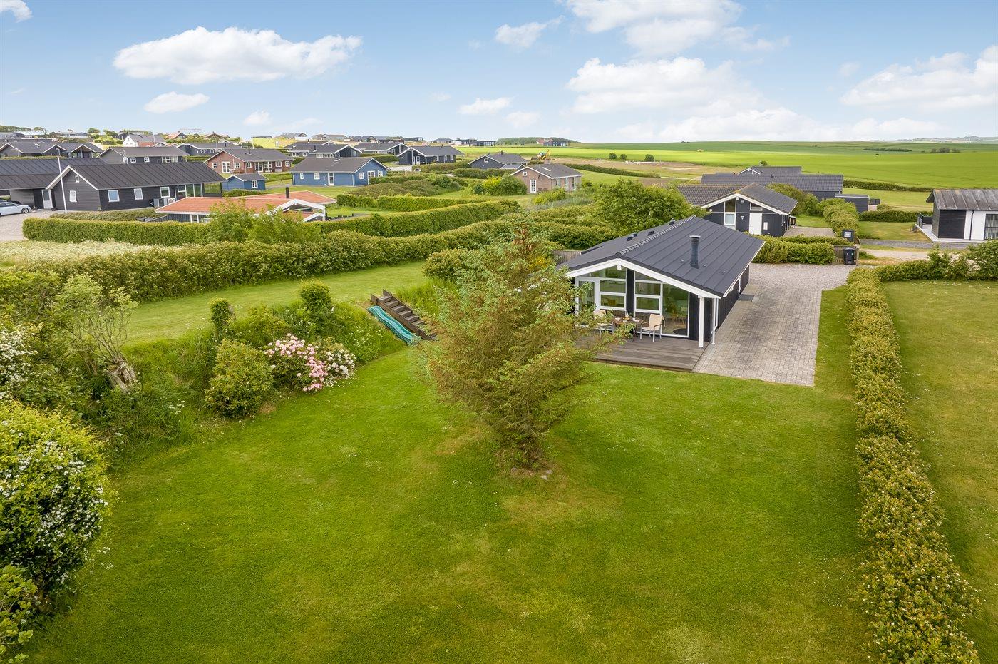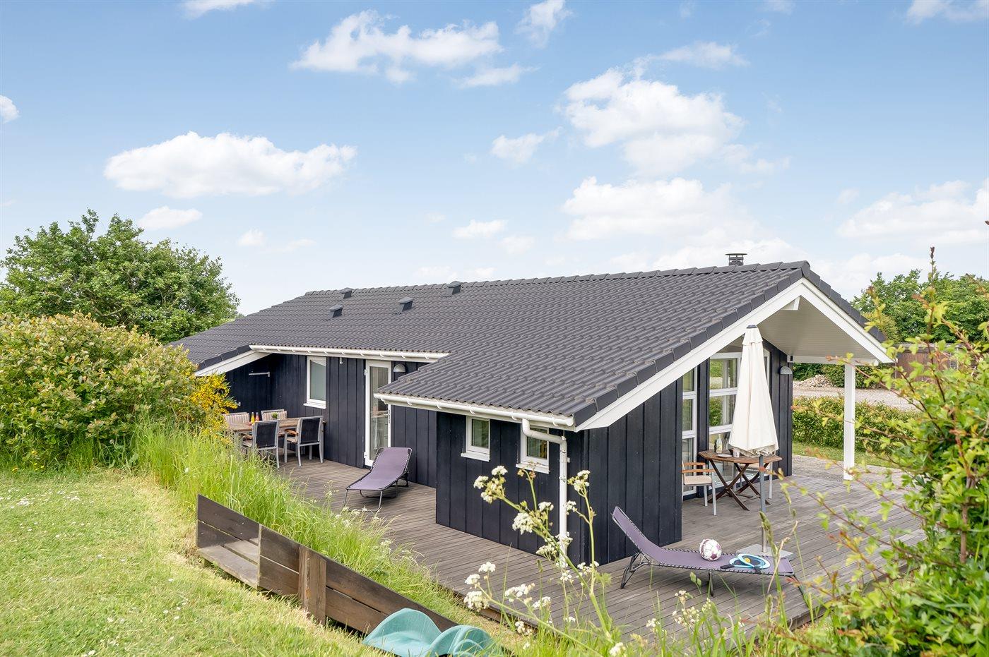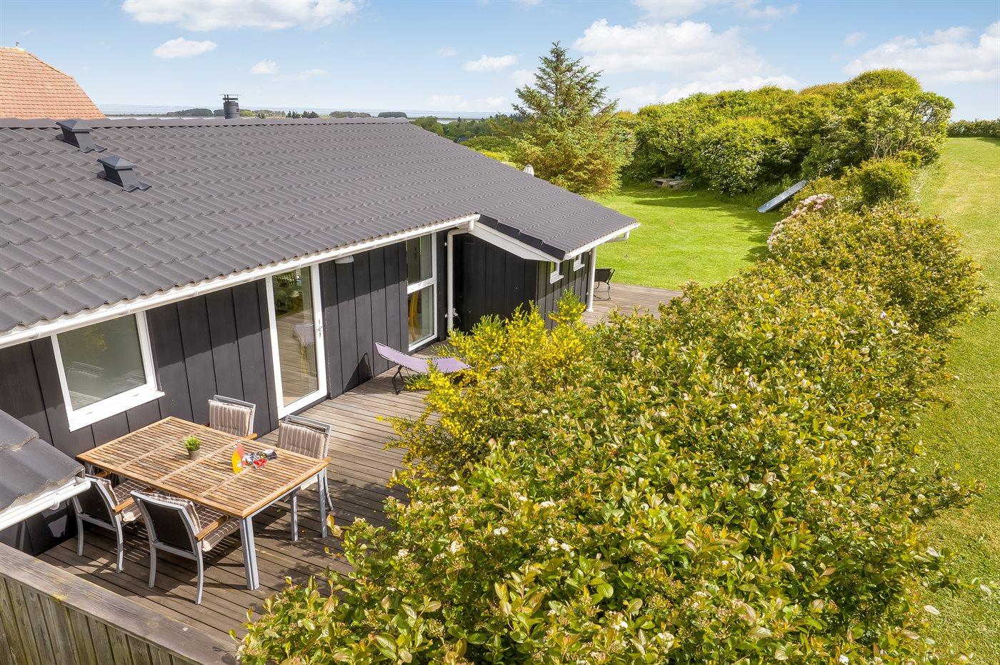 Ferieboligen er beliggende på en 1355 m² stor naturgrund. Der er 8500 m til havet. Der er 330 m til fjorden. Nærmeste forretning er beliggende i en afstand af 1500 m. Til ferieboligen hører 90 m² terrasseareal. Desuden er der 8 m² overdækket terrasse. Der er redskabsrum. Rutchebane. Grill til rådighed. Parkering ved ferieboligen.