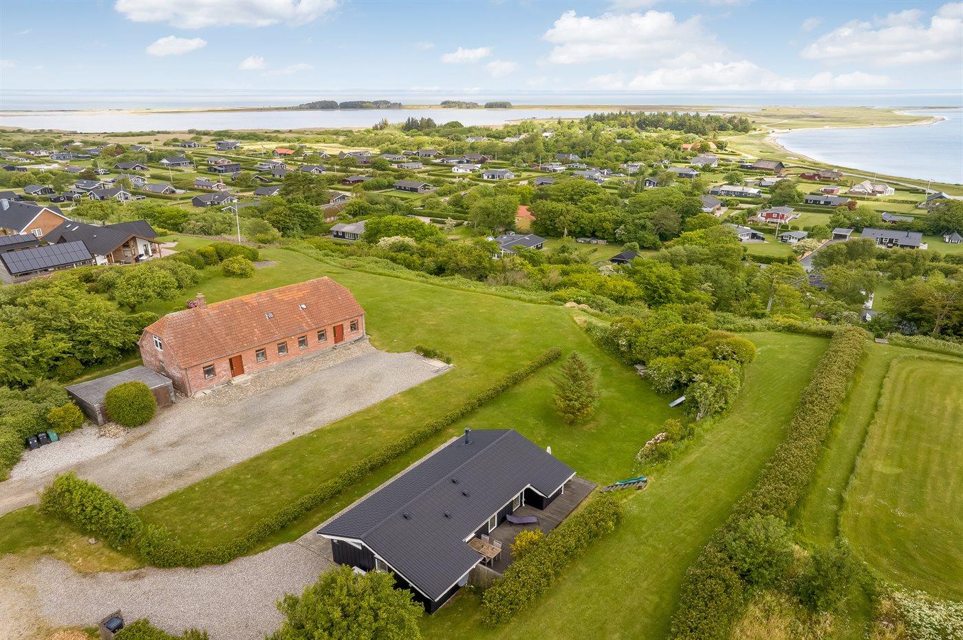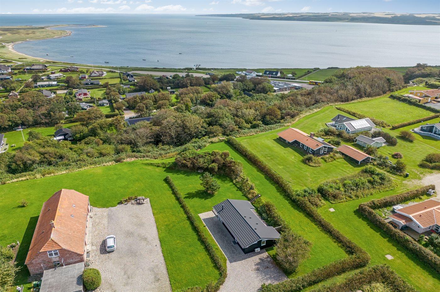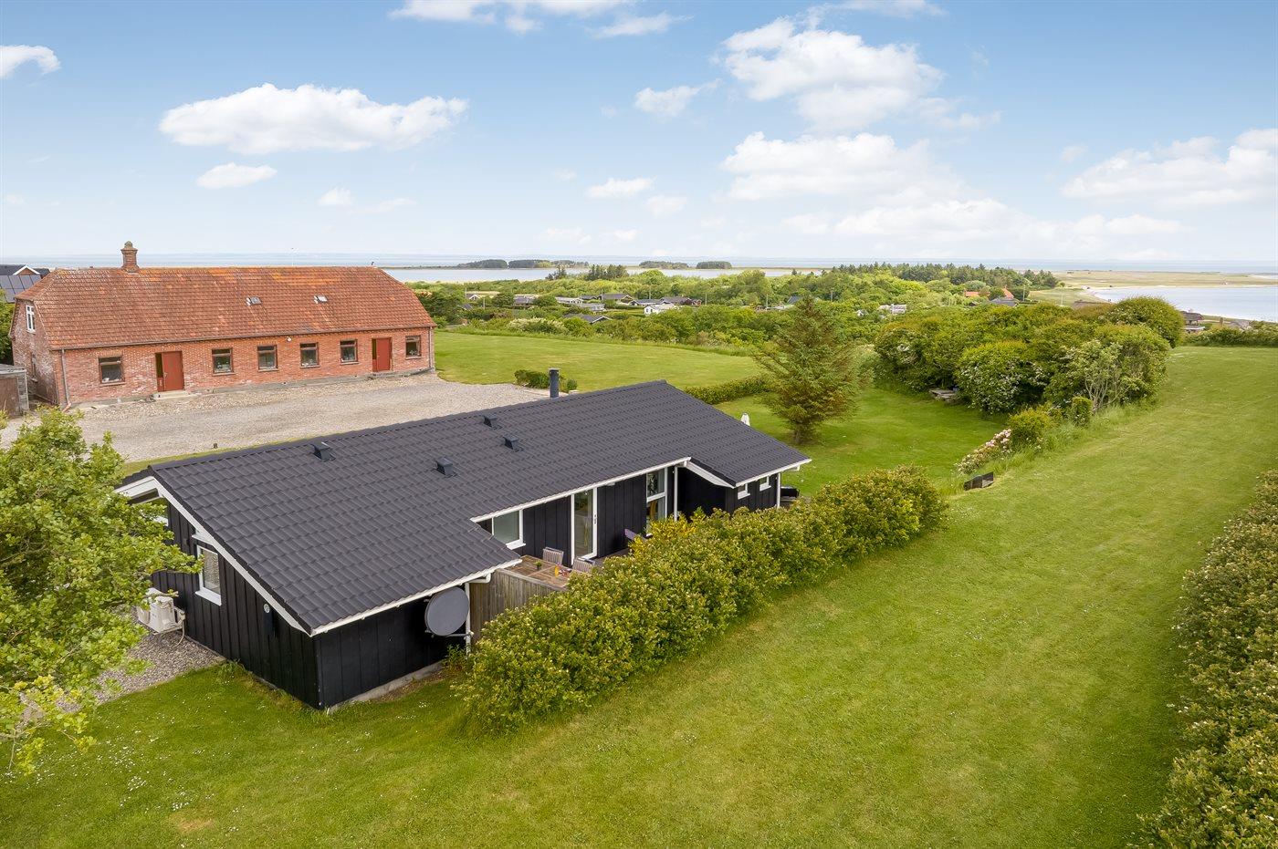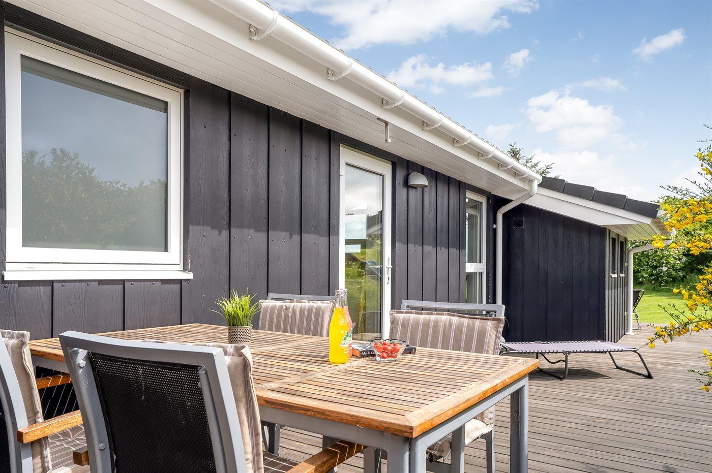 Ferieboligen er beliggende på en 1355 m² stor naturgrund. Der er 8500 m til havet. Der er 330 m til fjorden. Nærmeste forretning er beliggende i en afstand af 1500 m. Til ferieboligen hører 90 m² terrasseareal. Desuden er der 8 m² overdækket terrasse. Der er redskabsrum. Rutchebane. Grill til rådighed. Parkering ved ferieboligen.