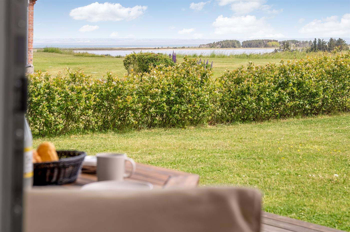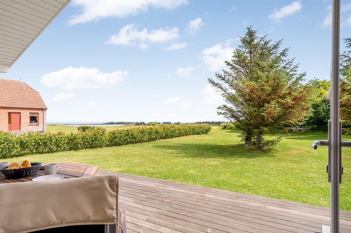Moderne sommerhus med skøn fjordudsigt, stor terrasse og plads til hyggelige aktiviteter i naturskønne omgivelser.