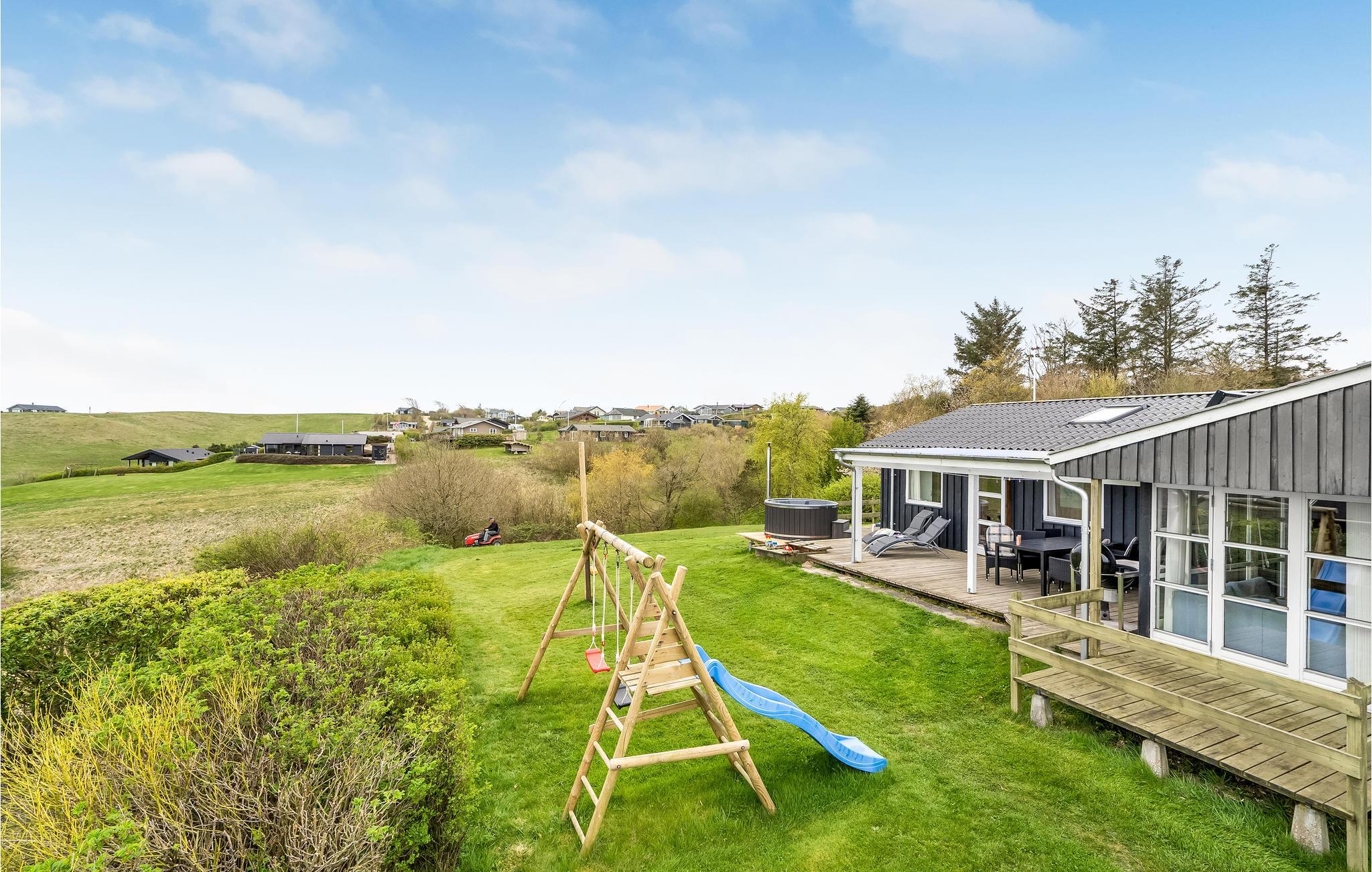 Dette dejlige feriehus ligger på en stor naturgrund med en flot og unik udsigt over fjorden. Huset ligger i et roligt ferieområde som indbyder til gå-, løbe- og cykelture. Det er hyggeligt indrettet, og er velegnet til såvel børnefamilier som par. Af byer i nærheden kan Lemvig fremhæves - også kaldet Vestjyllands bjergby. Byen ligger i et flot kuperet område, og er en hyggelig handelsby. Harboøre, som er en mindre stationsby, ligger kun 12 km fra feriehuset. Lidt vest for selve Harboøre by ligger Flyvholm Redningsstation, der nu fungerer som et museum. Lidt længere væk (22 km) ligger Thyborøn, som byder på flere seværdigheder. Her kan nævnes Kystcentret Thyborøn, hvor læring om naturen ved Vesterhavet og Limfjorden foregår ved leg og brug af sanser. Jyllands Akvariet, som byder velkommen til en forunderlig verden under vandet, og Sneglehuset, som er en hel unik bygning, dekoreret med millioner af snegle og skaller, både ude og inde - alt sammen lavet af én enkelt mand gennem et helt liv!