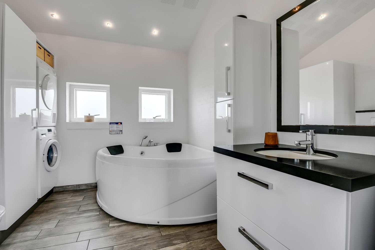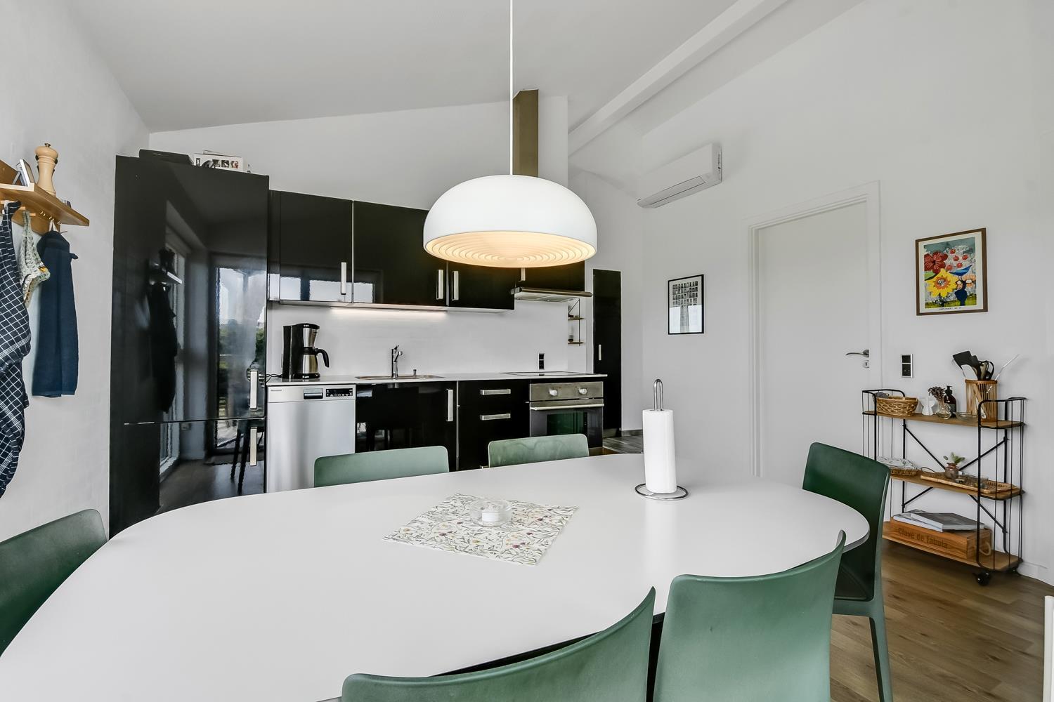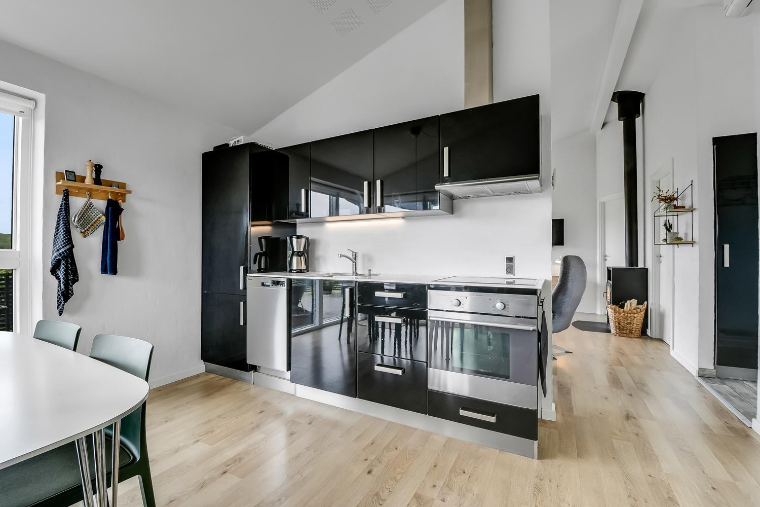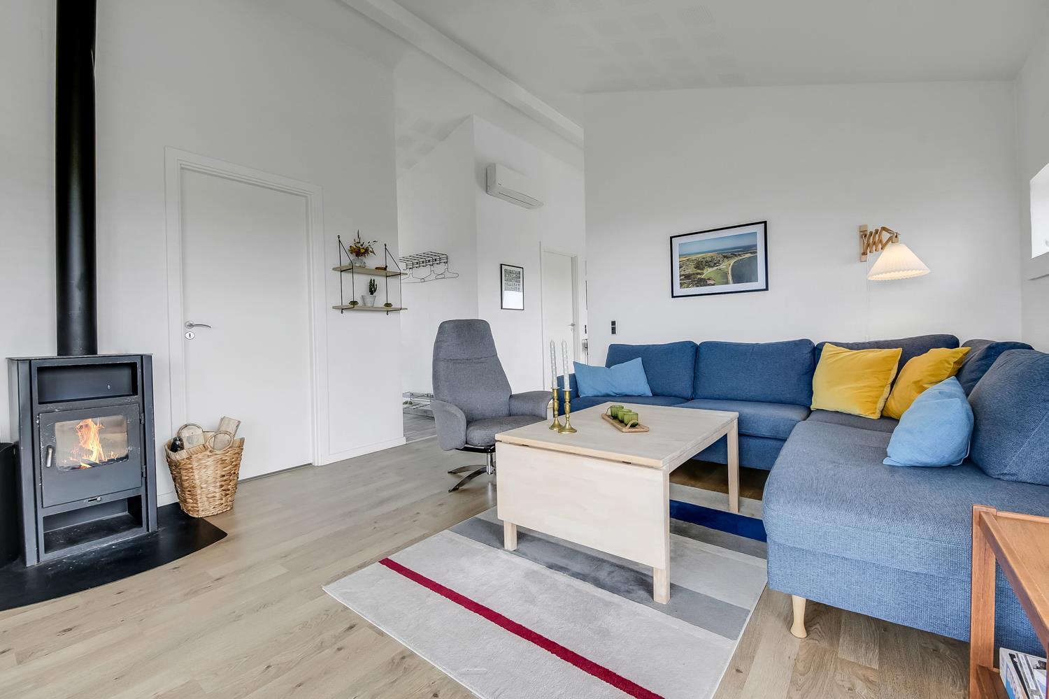 Allerede når I kører op til huset kan I se at det er et meget velholdt feriehus. Der er en kombineret stue og køkken, hvor køkkenet er afskærmet med en væg, her er spisebordet også placeret. Dejlig lys opholdsstue med gode lædermøbler, her er der TV med danske og tyske programmer samt en DVD afspiller, trægulv, der er desuden en dejlig brændeovn som sammen med varmepumpen sørger for en behagelig varme på de kolde dage og begge er medvirkende til at forbrugsafregningen blir lavere. Køkkenet er godt udstyret og har el-keramisk kogeplade, opvaskemaskine, emhætte, mikroovn, indbygningsovn samt en køle-/fryseskab her er der også trægulv. Husets badeværelse er med toilet, håndvask, bruser, spabad samt vaskemaskine og tørretumbler. 3 gode soverum: 1DS + 1DS + 1 doppelt sovesofa. Til de mindste gæster er der en barneseng. Et meget moderne og indbydende hus. Ikke rygerhus. 1 husdyr tilladt.